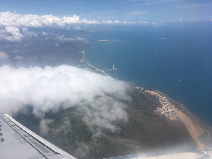 飞机下降前在南海观音上盘旋一圈!