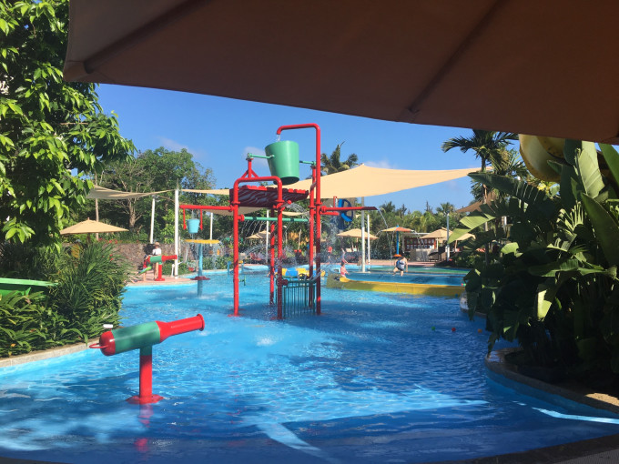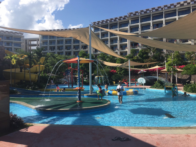 游泳池有三个,一个小的水上游乐场,小朋友玩的比较多,但只有白天开放,中间有个圆形大游泳池,再往下走有个稍小的,但是,都只有1.1米,游起来很别扭。