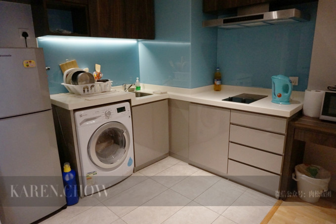 开放式厨房,洗衣机还是有烘干功能的。