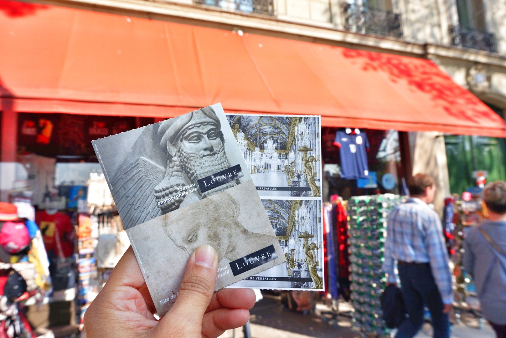 放完行李,已经12点多,所以第一件事是赶去取票地点拿取票(卢浮宫and凡尔赛宫),之前已经在网上订好(万能的某宝),而取票地点有两个,一个在香榭丽舍,一个在叫QUAI DU LOUVRE的地方,由于后者距离卢浮宫比较近,所以我们选择了后者。然而我们按照门牌号找到了28号,却发现是大大的绿色的门,没辙打电话到当地客服(有一个能通电话的手机还是有必要的),才知道,原来取票地点就是旁边的纪念品店,具体如下,大家可是看清楚……