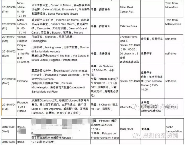 P.S.:后来五渔村的行程取消了,加了一晚佛罗伦萨,却发现,因祸得福,因为其实至少要在佛罗伦萨待个3晚才能尽兴。