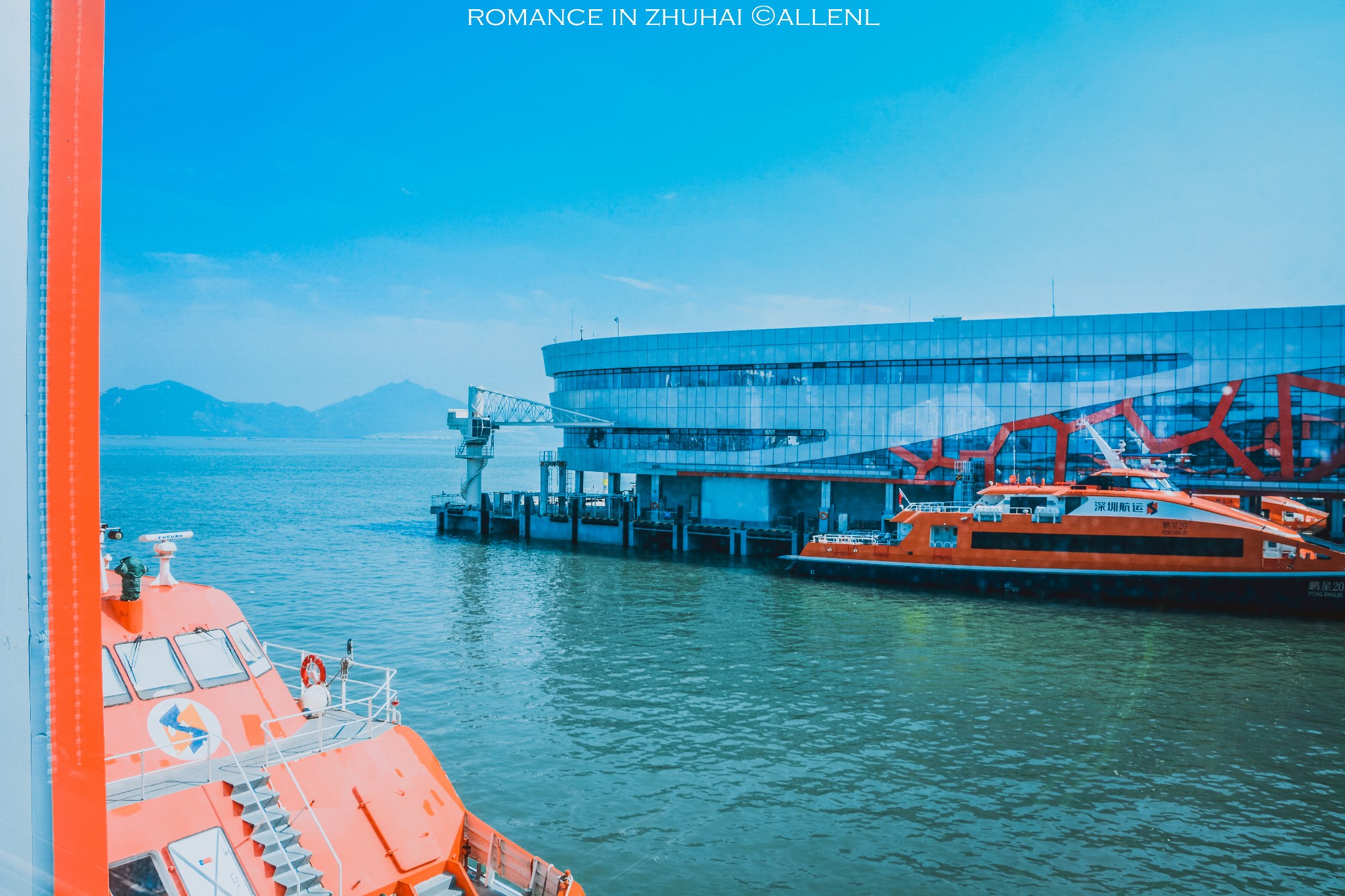 从淡蓝色玻璃往外望去,繁忙的码头亦是这座城市快速发展的缩影。