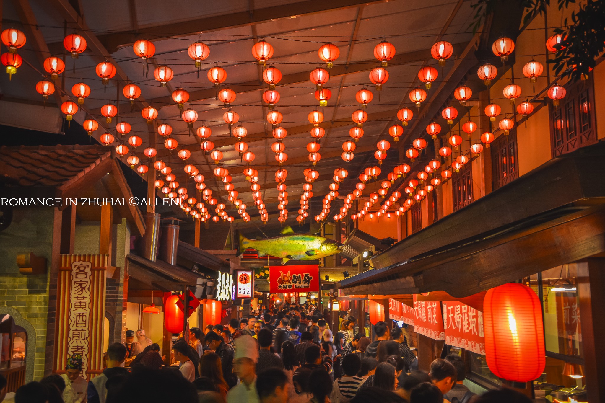 华灯初上,渔舟唱晚,落日织染。