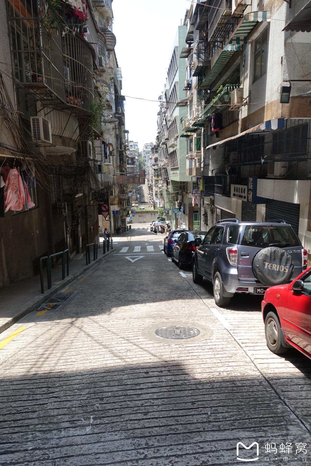 东望洋新街的街头随处可见这种很有味道的斜坡。澳门人口密度比较低,可能是因为人都挤进去赌场了,但是这样的街头,反而徒增了几分味道。