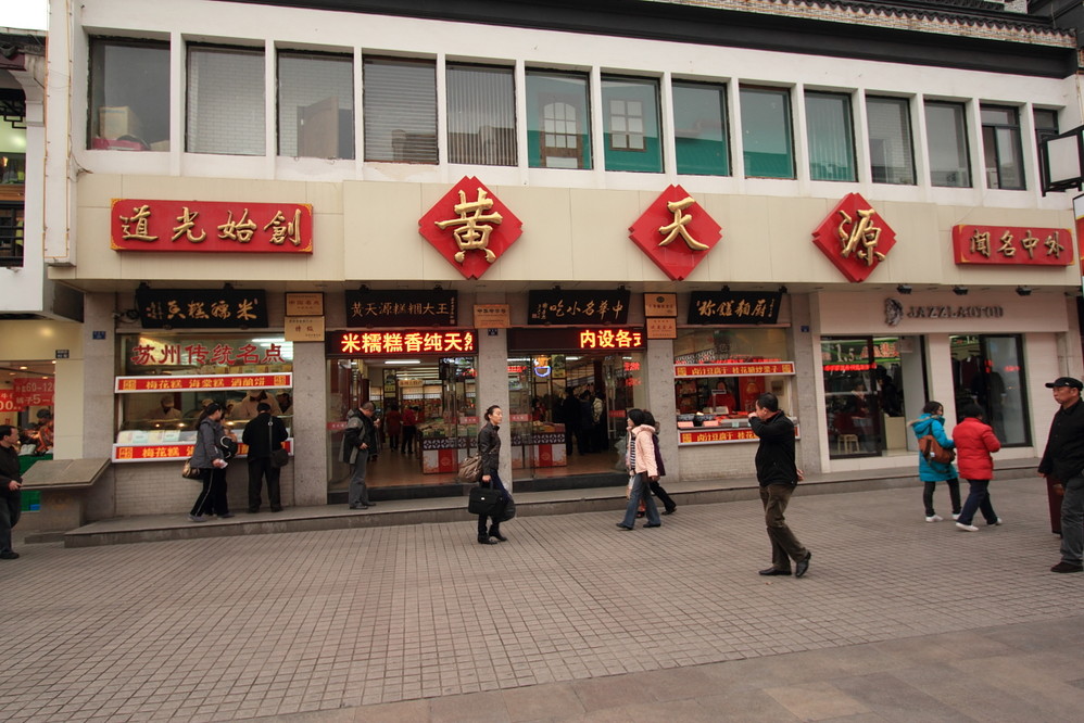 百年老店——大多在观前街,采芝斋、黄天源、叶受和、三万昌;,美食方面也有朱鸿兴面馆、得月楼、松鹤楼等;