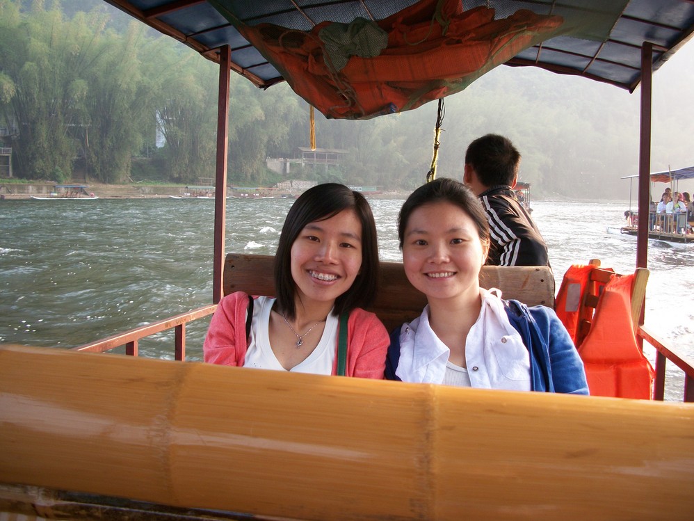 接下来到了遇龙河,原本以为遇龙河漂流会像在清远漂流那样惊险而刺激,相反的,在这里却是更加的委婉。竹筏师傅慢慢的划动竹筏,听着阿妹和阿哥在对唱山歌,别有一番滋味。