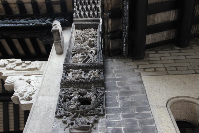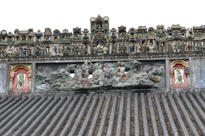 饭后,公交直达陈家祠,在老城区还是公交比地铁方便,下车就是。陈家祠是广东现存规模最大,建筑装饰最为精美的一座清代岭南祠堂式建筑,有民间故宫的美誉。来到这种地方我们一般都会请讲解员,这个不能省,知识底蕴有限,不然就成了走马观花。木雕、石雕、砖雕、陶塑、灰塑、彩绘、铜铁铸等各种岭南建筑装饰艺术,介绍的很详细,小朋友听的认真,对于岭南民俗有了初步认识及了解。陈家祠相关的内容蜂窝网里有更加详细的介绍。