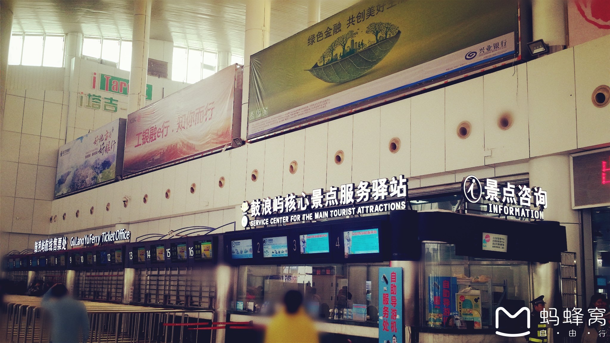 候客厅里无时不刻不在排队,但切忌盲目排队,大屏幕上会提示当前检票船次的出发时间,游客可根据提示排队。空闲的时间来看看窗外的客轮、海面,了解一下厦门的历史也是不错的。