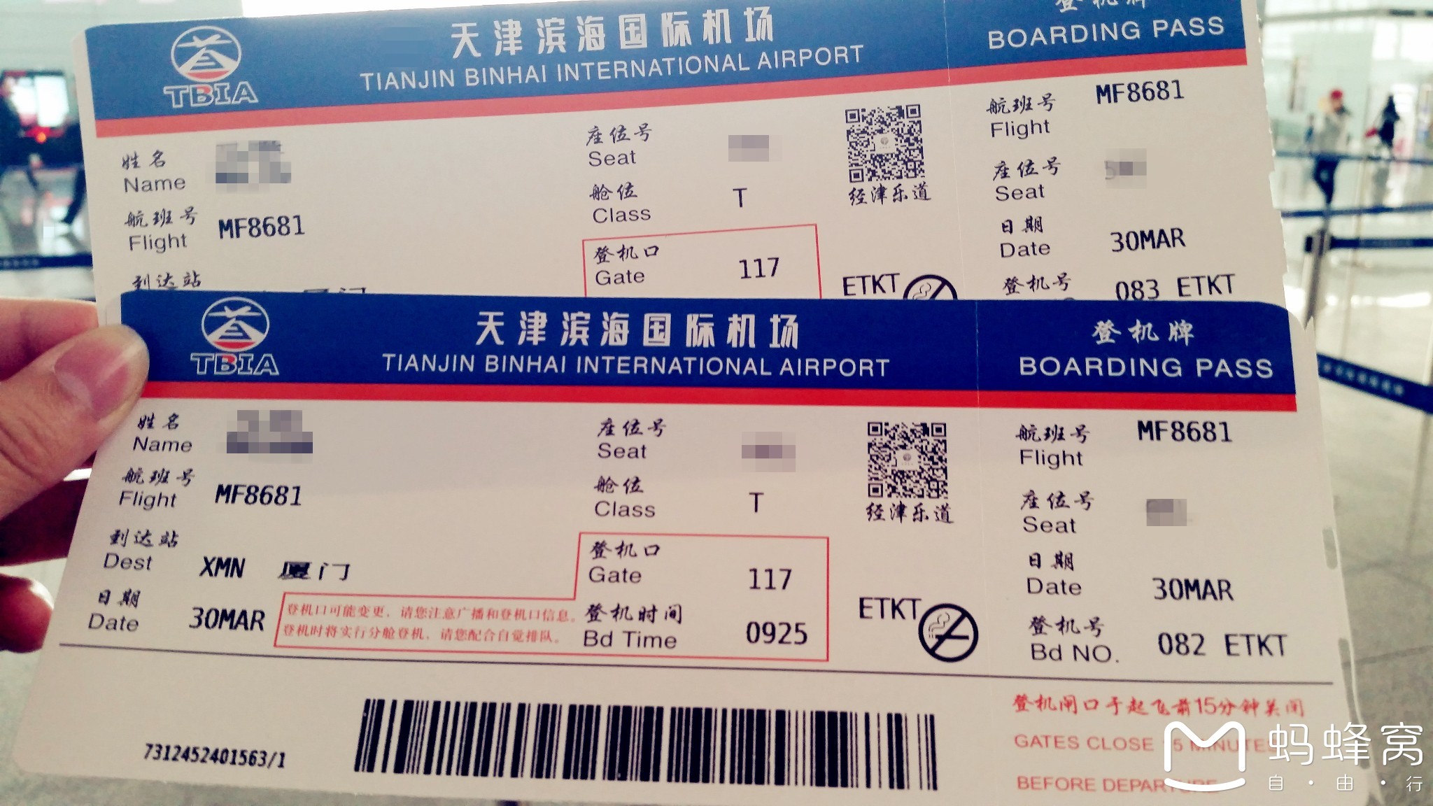 天津去往厦门可乘高铁(耗时约10-11个小时)或飞机(耗时3个小时)。这次我们选择了厦门航空MF8681。滨海国际机场T2(10:05)—→高崎国际机场T3(13:00)。