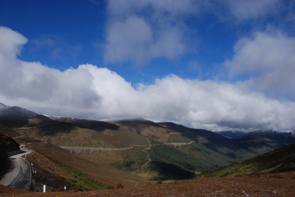 这就是从亚丁 出来时,回头看到的路。当时真是转晕了!也可能是走上珍珠海 时,被寒风凉一下,晚上在稻城 住时,出现了高原反应。好在吸了点氧气,第二天恢复过来。