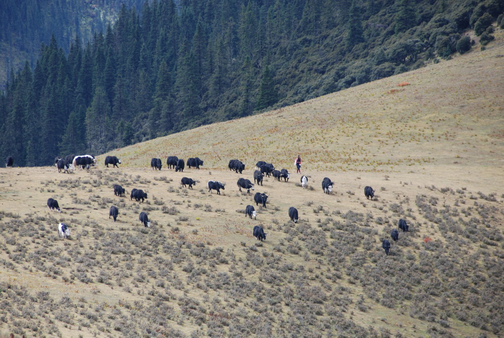 洛绒牛场,过去是放牧的,现在已经作为旅游点。如果时间早,还可以在这里租骡子去牛奶海(5000多米海拔高度),来回要三、四个小时。印象中骡子一天只走两次,下午那些人不愿意去,说骡子累,而且旺季骑骡子还要排除,所以决心去的,最好一到亚丁 ,就到牛场去牛奶海。