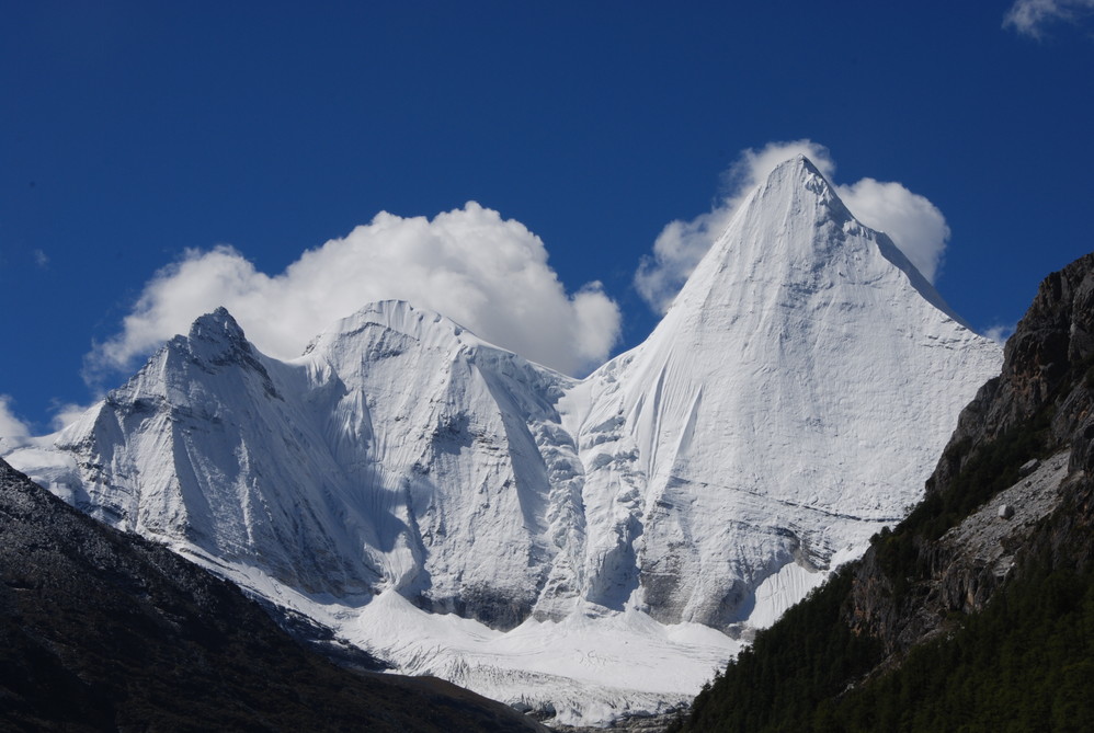 从奔子栏出发前行10公里进入白茫雪山,广袤的白茫雪山是金沙江 与澜沧江 的分水岭,从金沙江 河浴到山顶,相对落差是3000米,气候从热带河谷过度到永久性冰雪带,山坡上有树形优美的云杉林,每年5-6月,这一带30公里犹如花海,一边雪山,一边杜鹃,红白相映,十分壮观,从雪山垭口一路下行,抵达214国道咽喉,茶马古道重镇—德钦 ,再行20来分钟,就来到了梅里雪山 的观景台飞来寺。驱车从飞来寺出发,经过澜沧江 大桥,一个小时左右将到达明永村。从明永村开始徒步地球上维度最低,海拔最低的冰川——明永冰川。徒步来回五个小时。可以骑马(费用自理),回飞来寺住宿