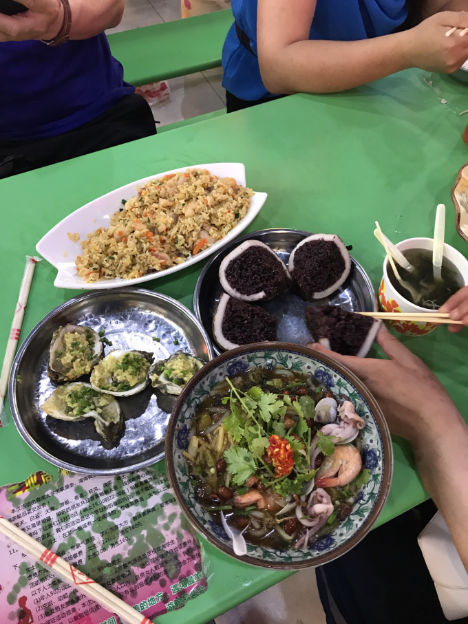 各种小吃,香味扑鼻啊,尤其和后来的亚龙湾什么的一对比,在这里不吃多点一定会后悔的,我们点的都是传说中的特色,哈哈,挺好吃的
