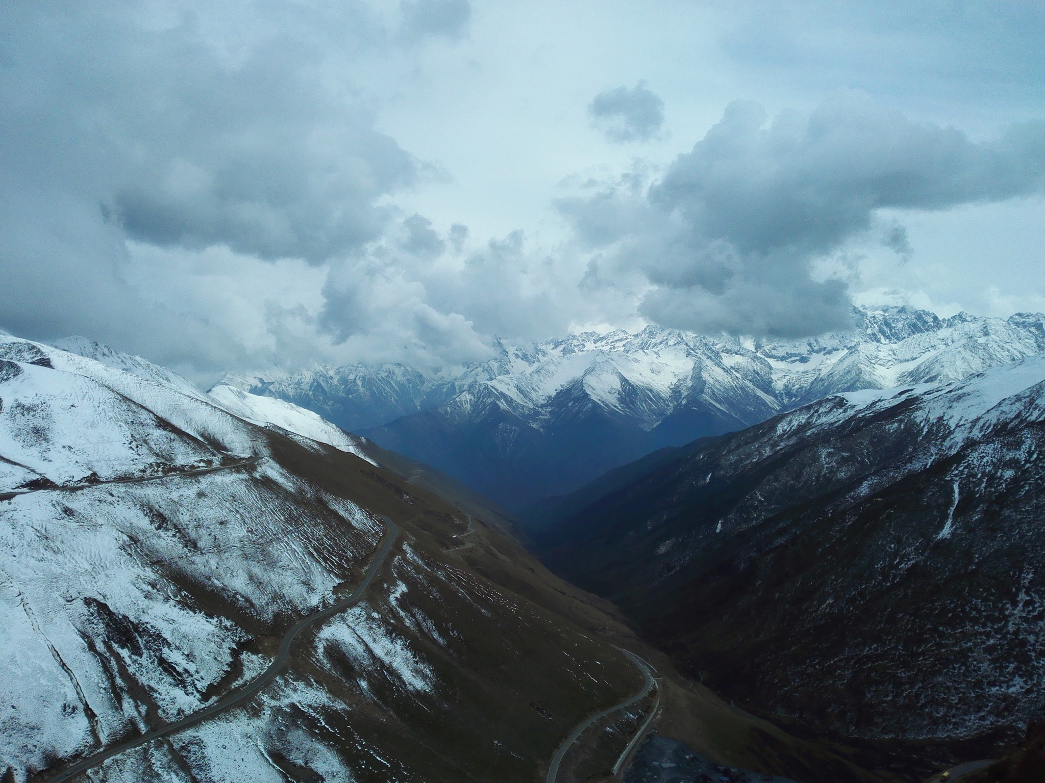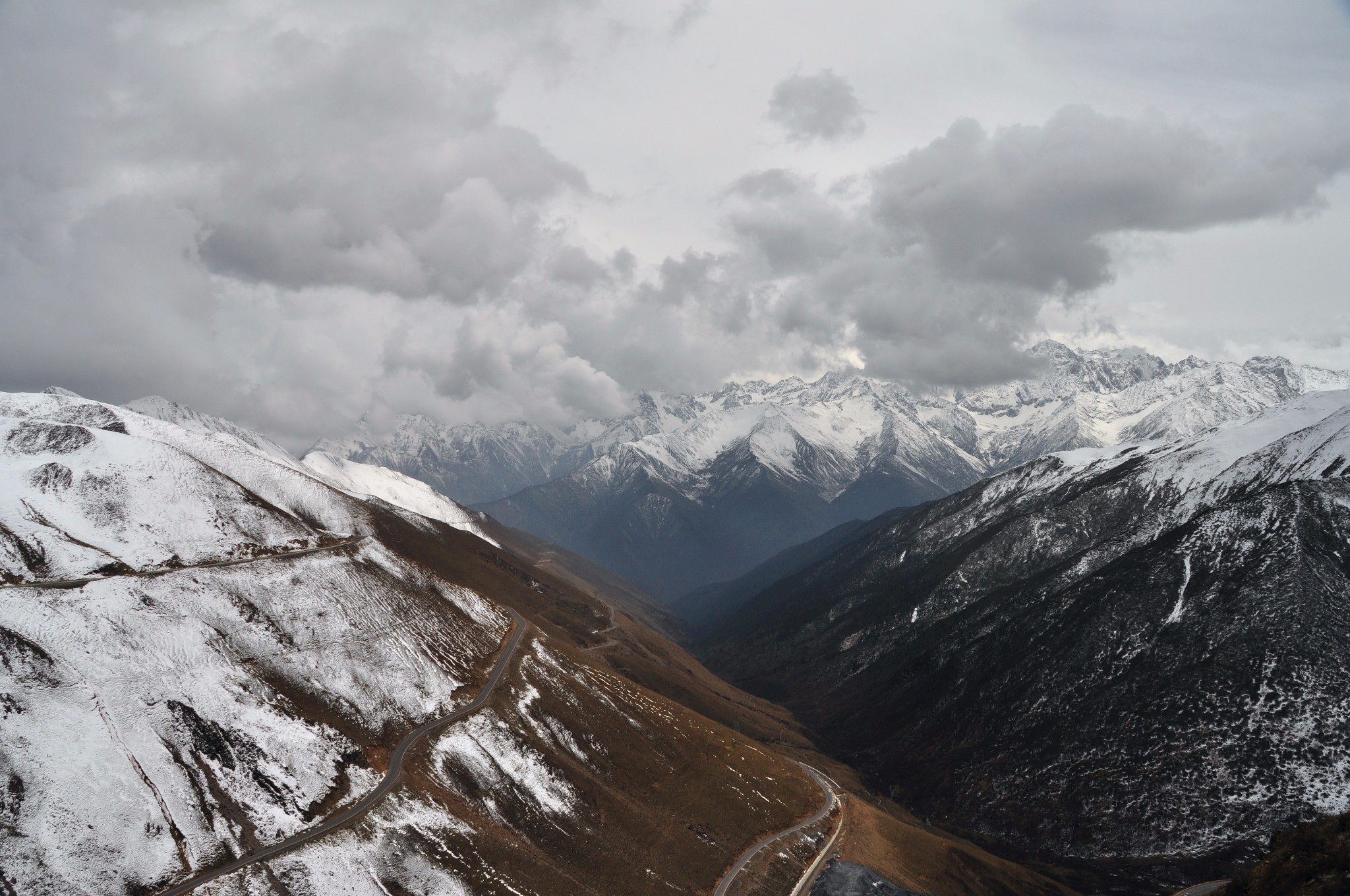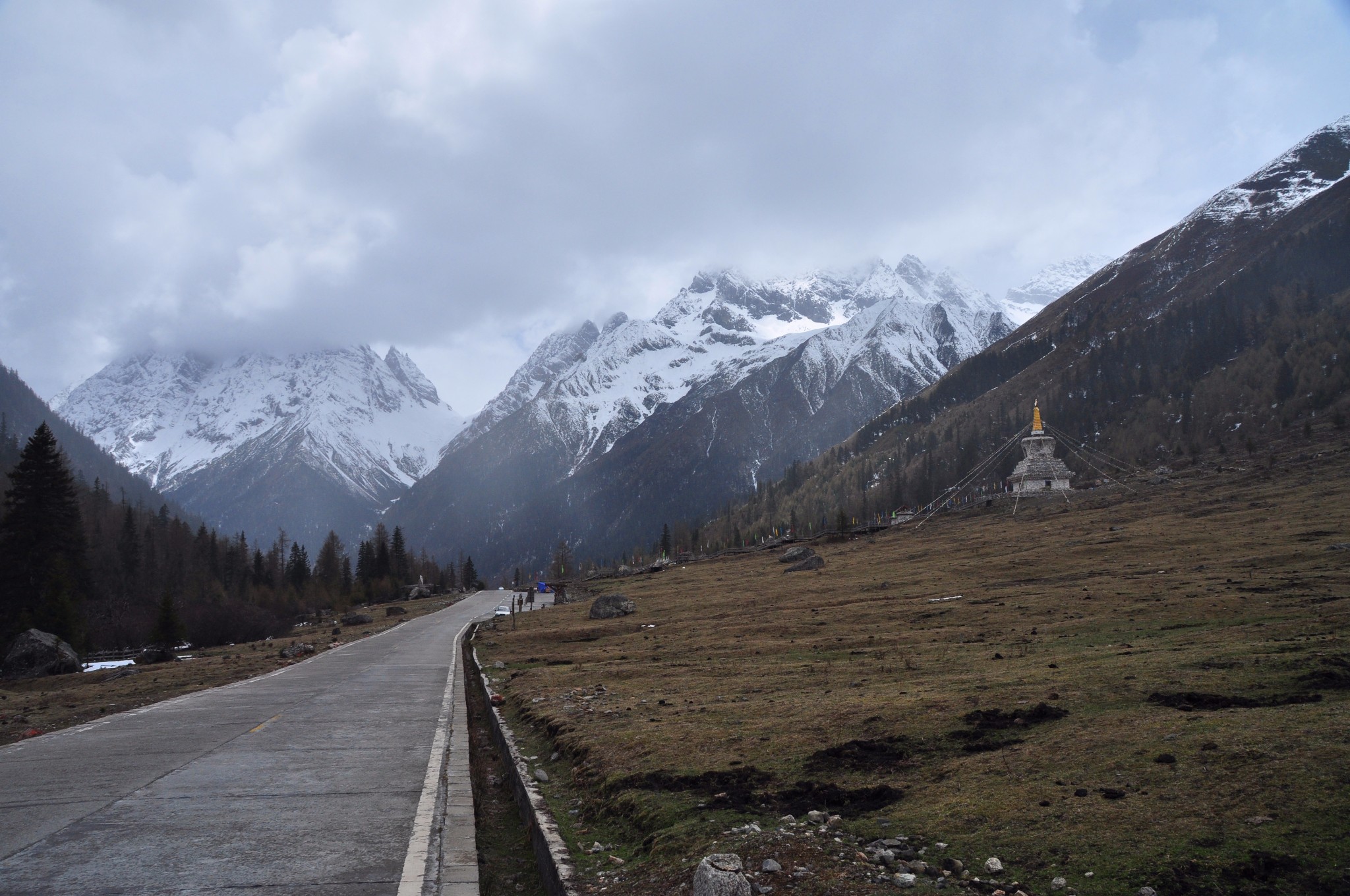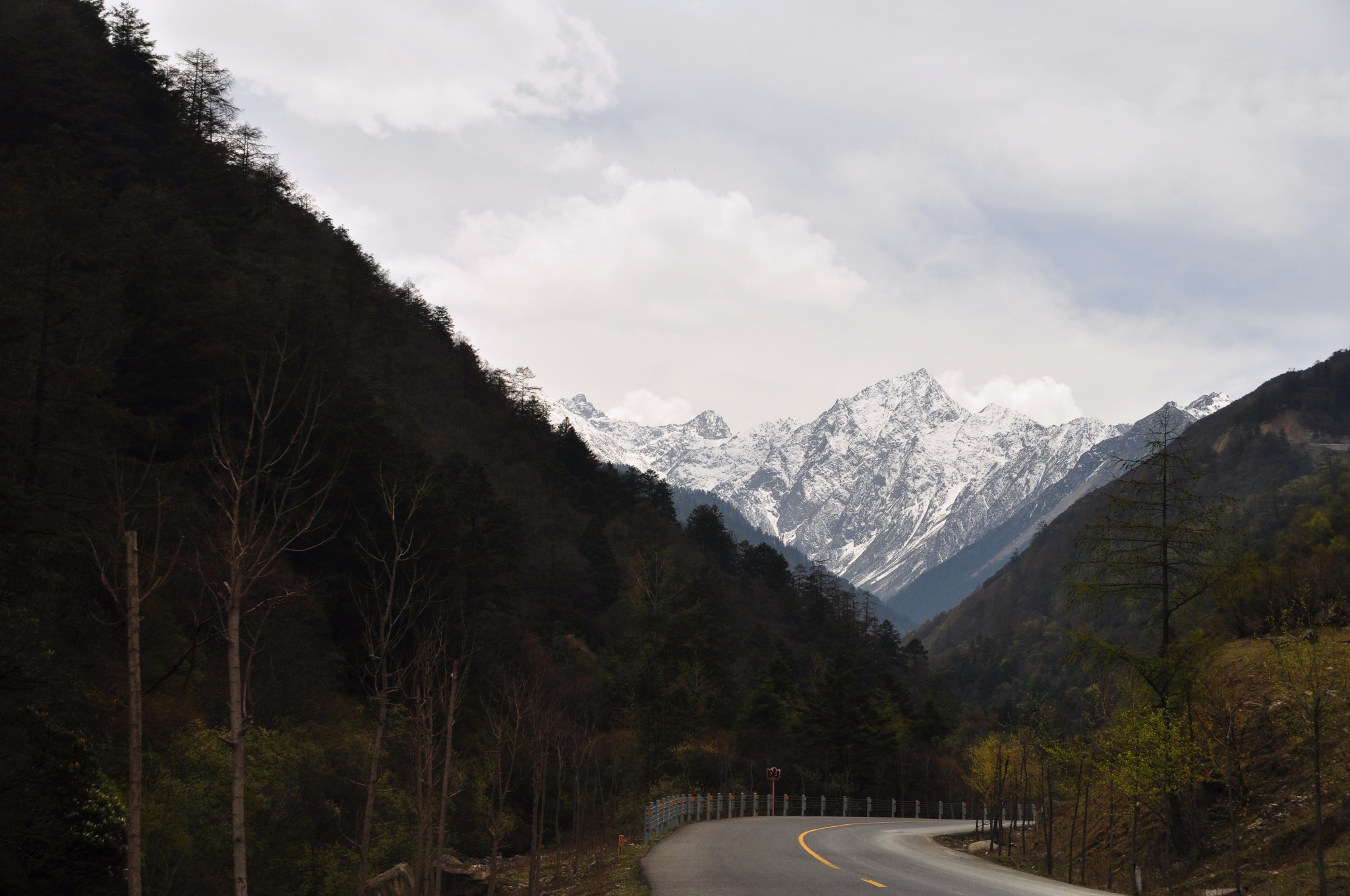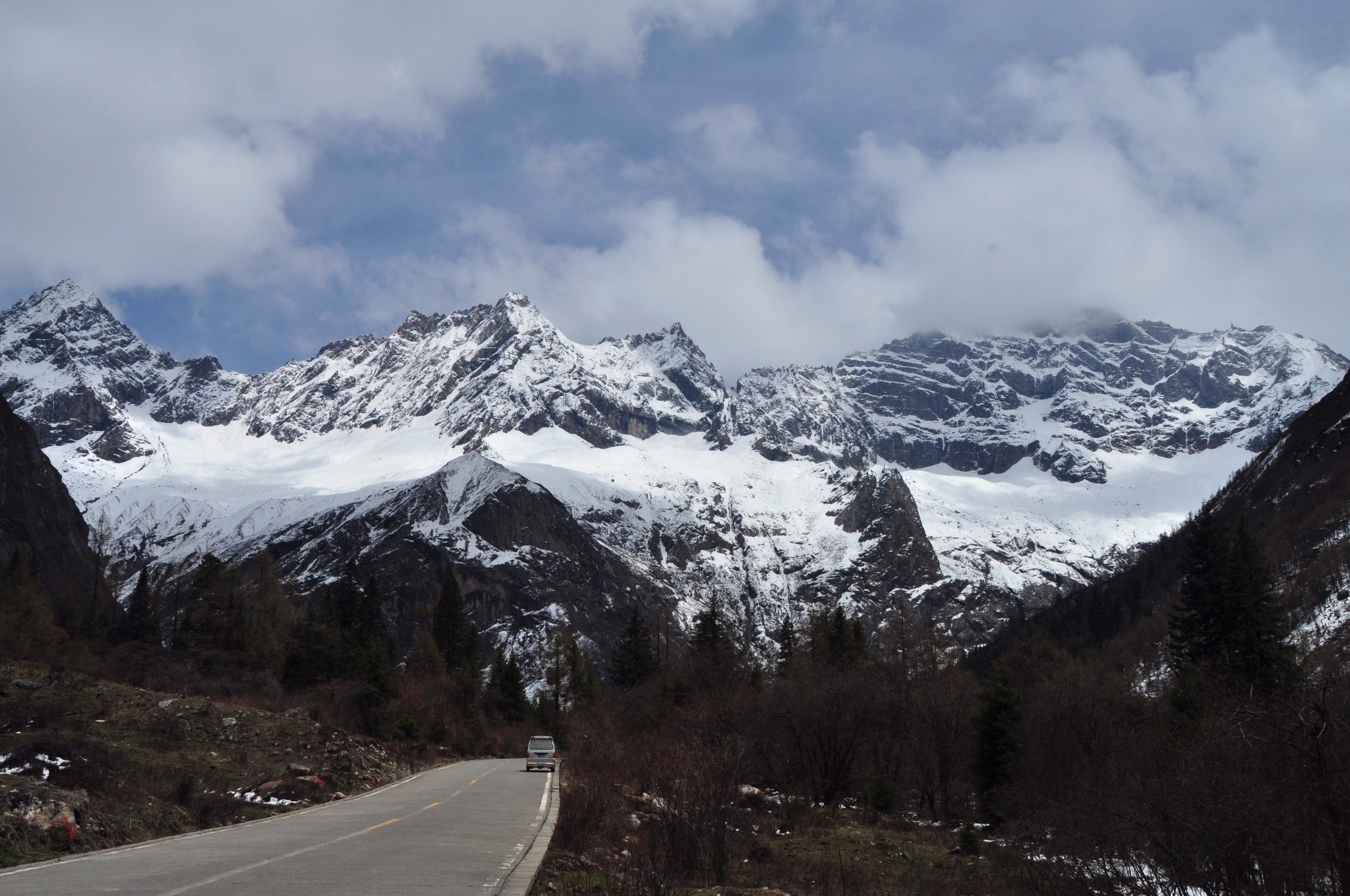 一路上,走走停停。各种拍照,各种兴奋。因为是四月底,五一期间。沿途的雪山隘口,雪还比较多。远处的四姑娘山,宛如四位白纱美女楚楚动人。