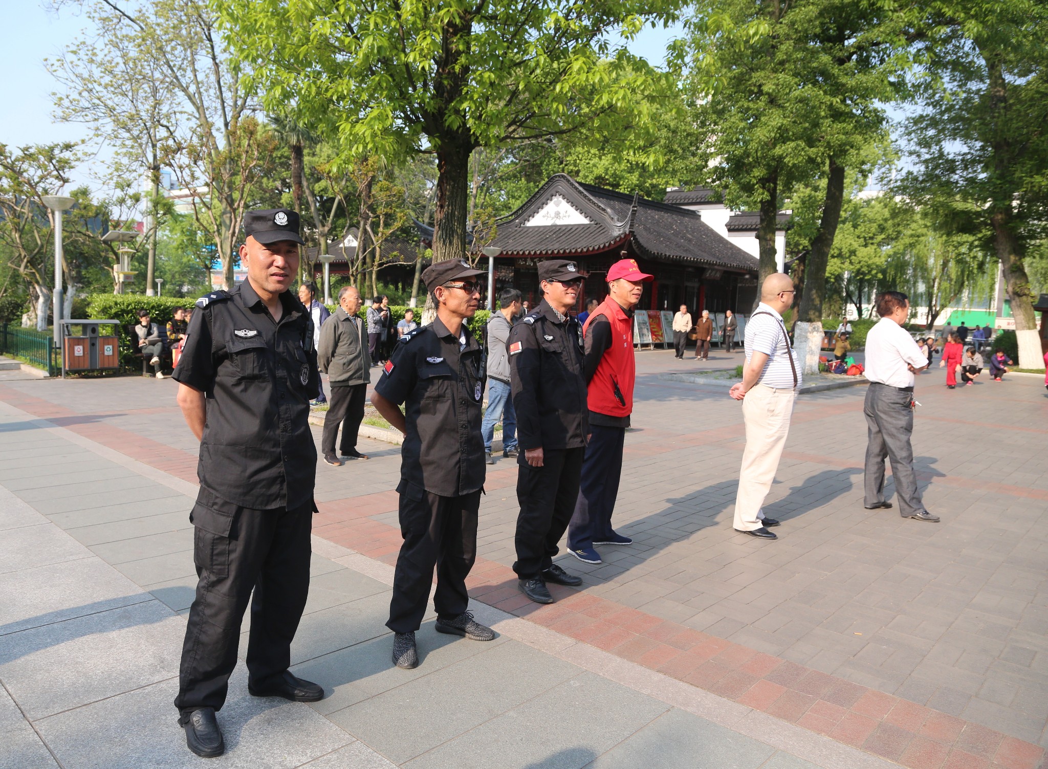 公园保安也在现场维持秩序。