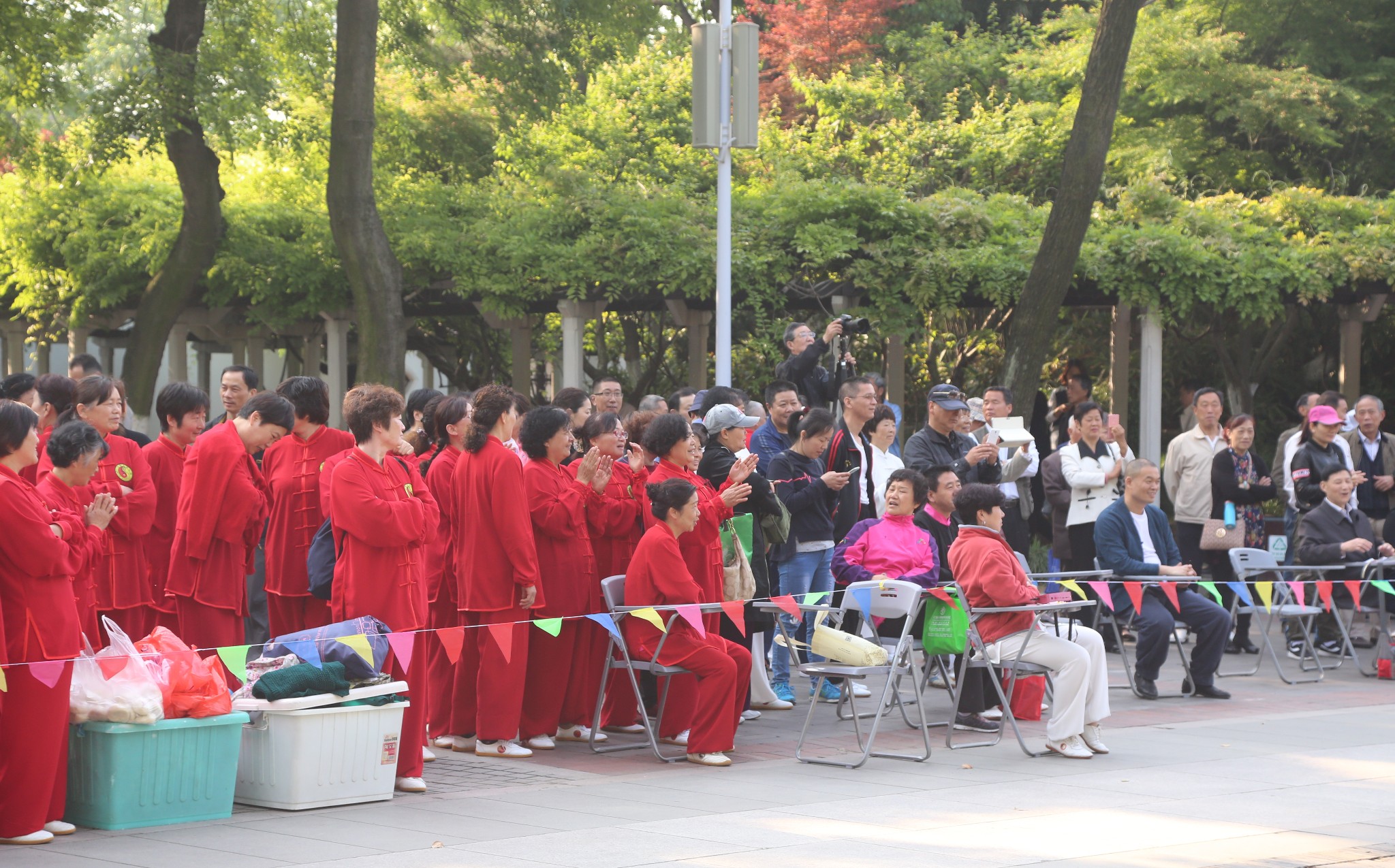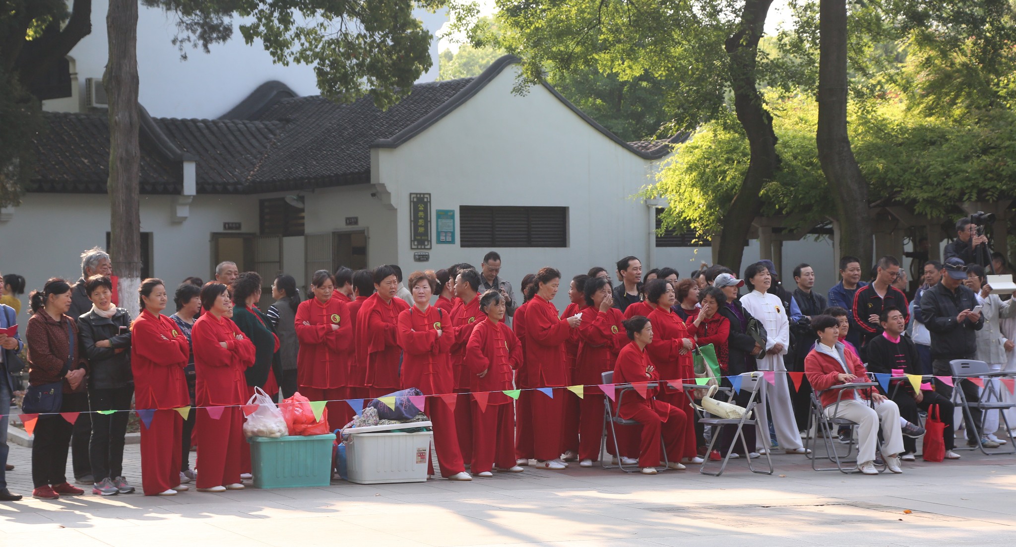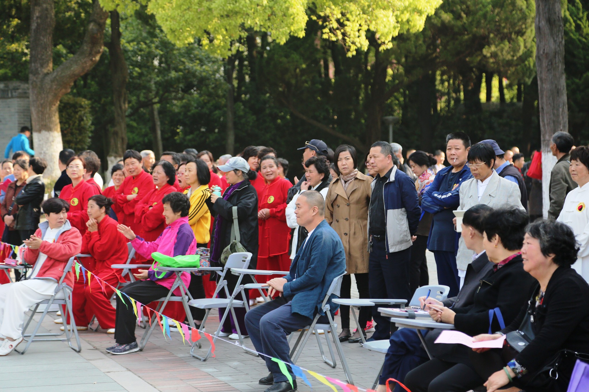 准备表演的虎啸太极拳友们,一身中国红。