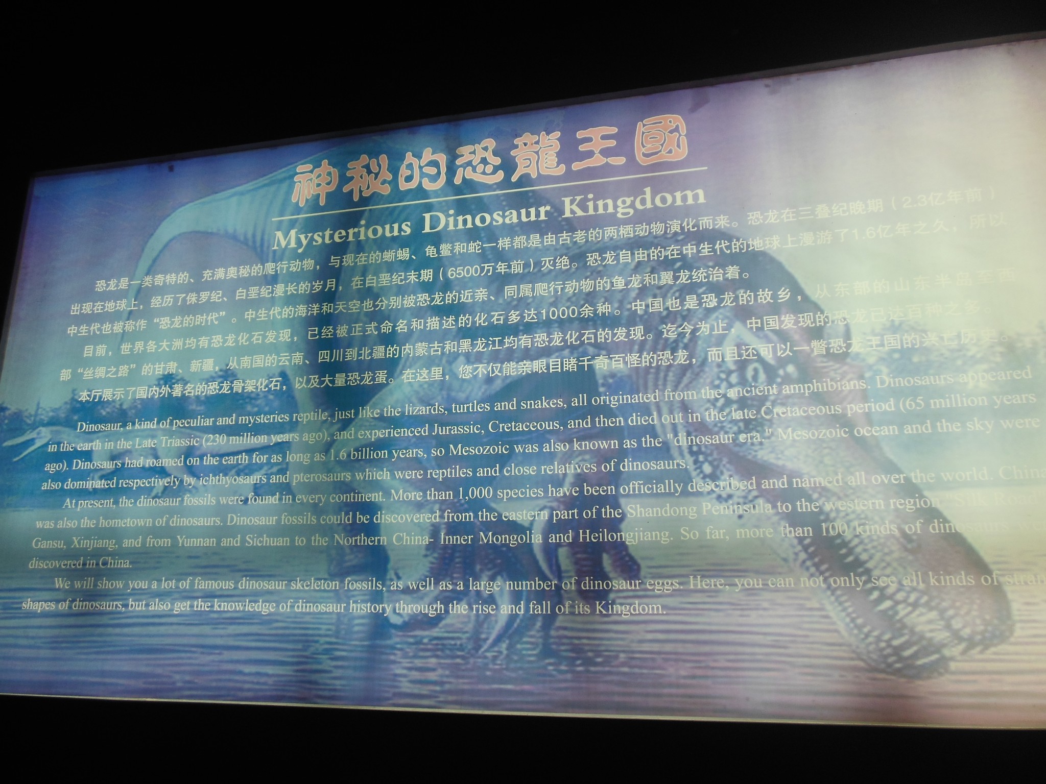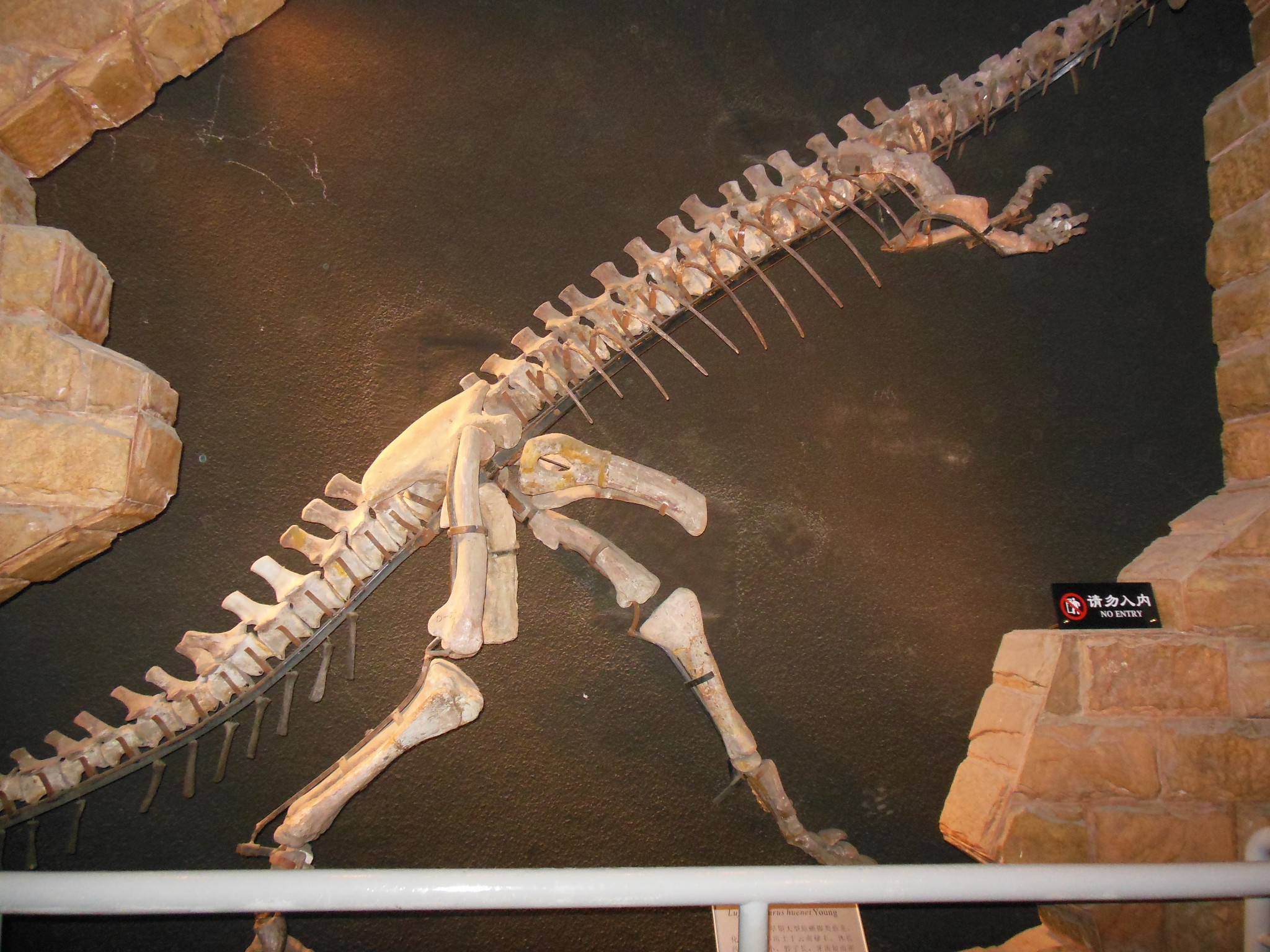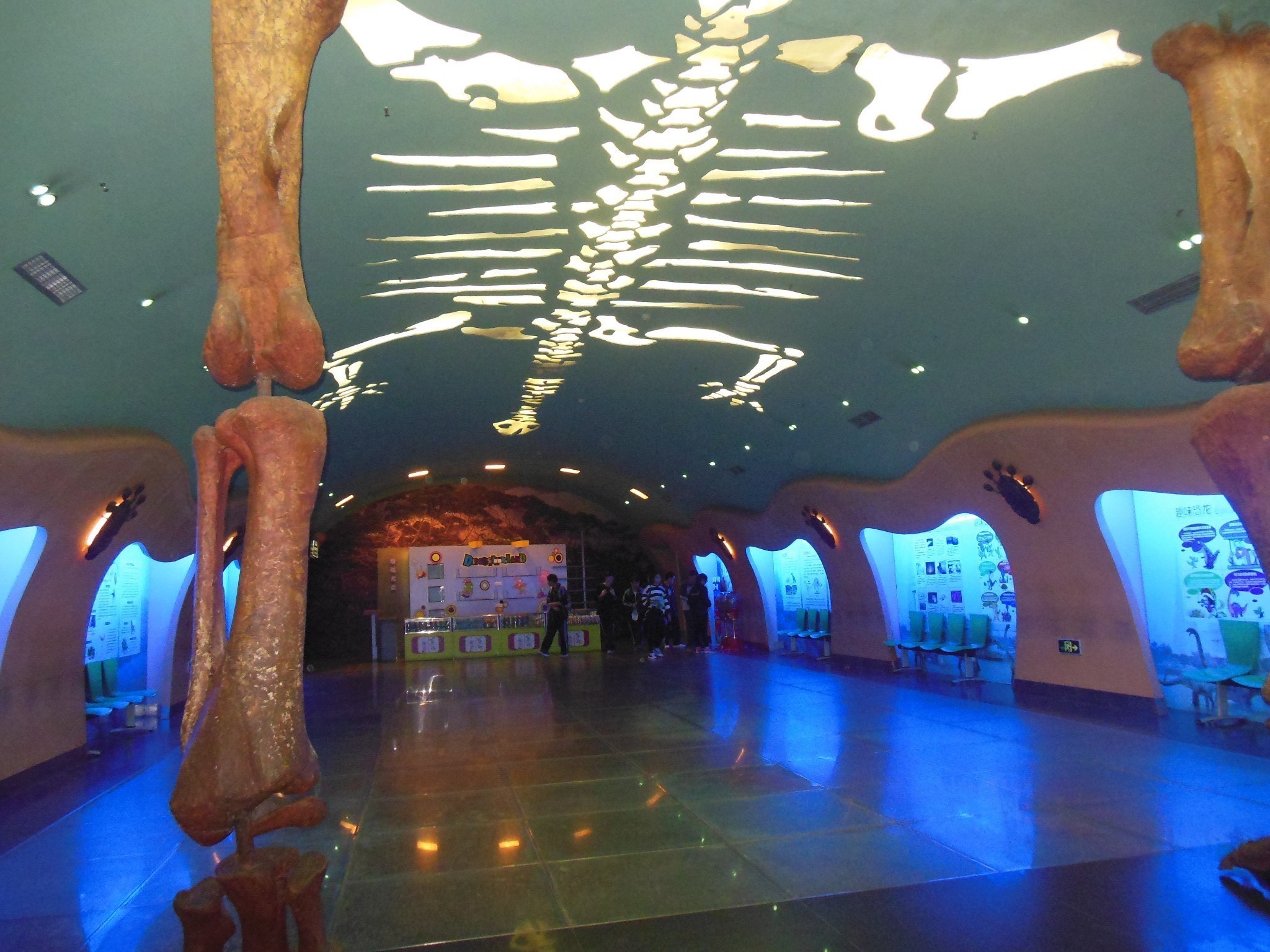 恐龙馆有上下3个陈列室,至少15具恐龙骨架,拍了几具,管理员让我把闪光灯关掉,说,闪光会损伤恐龙化石。