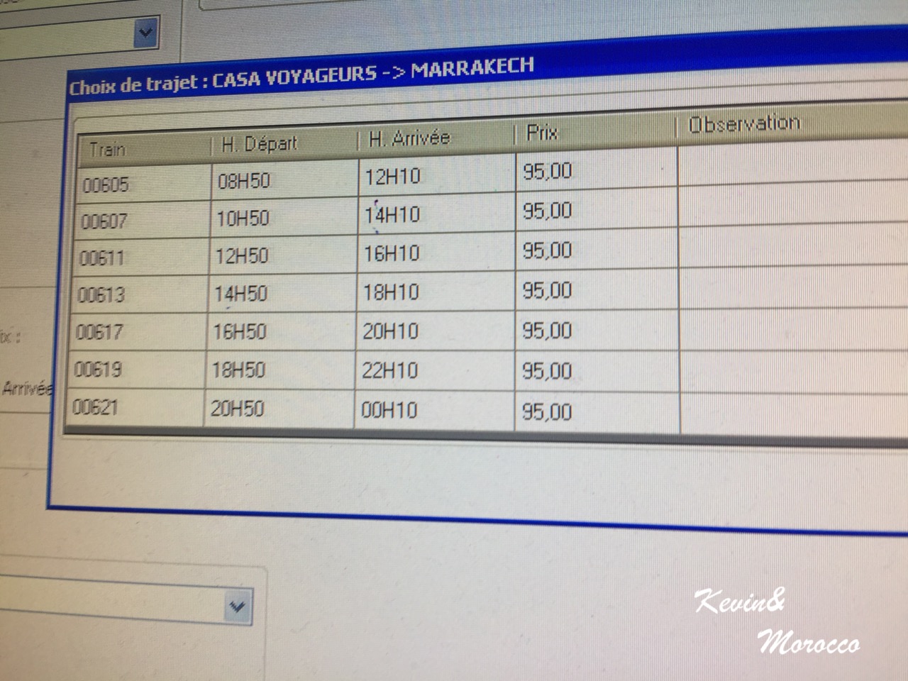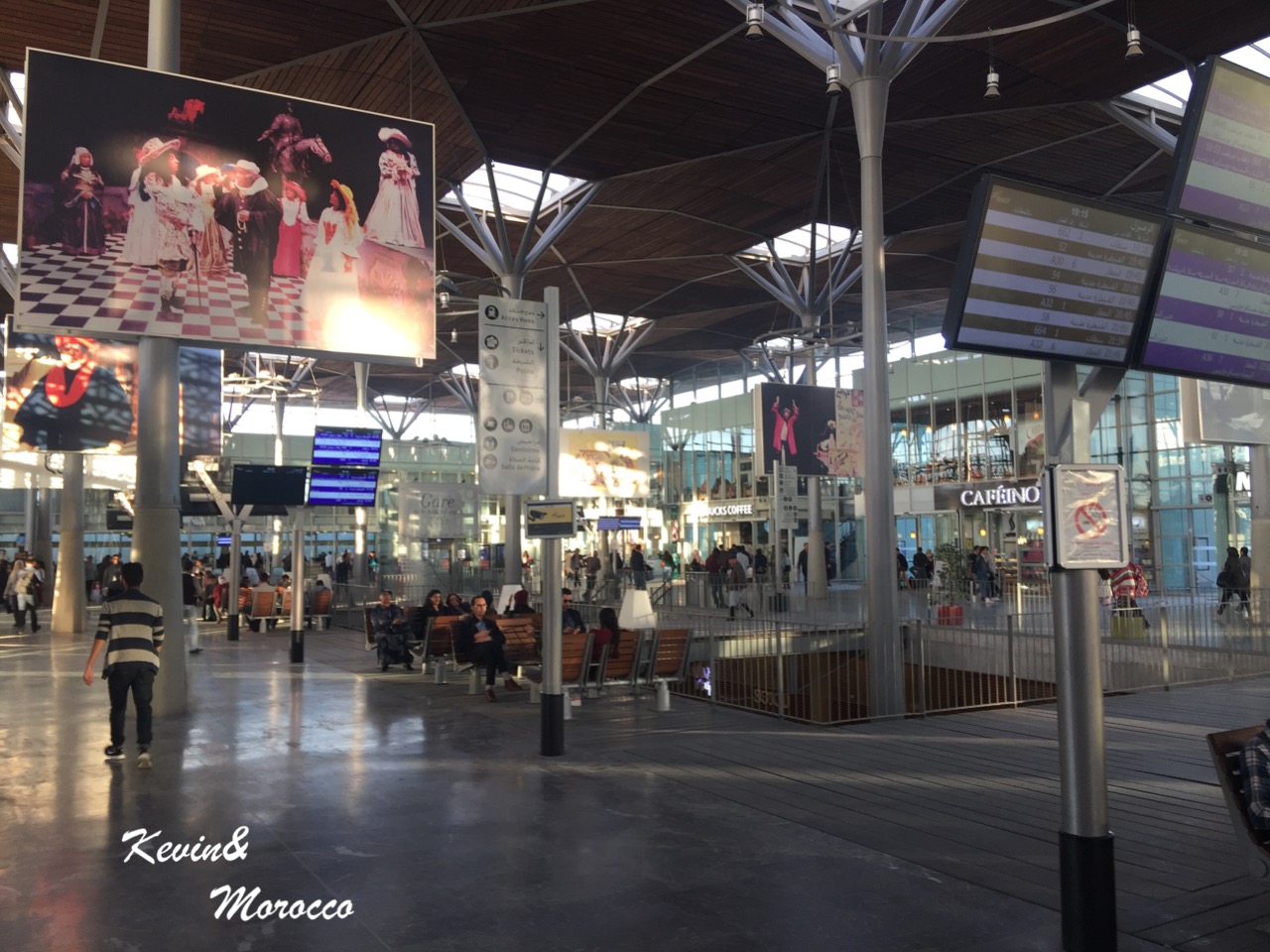 火车终点站是Casa Port 站,装修很现代,基础设施也很完善。我们下了火车,先去买了电话卡,然后到人工售票处询问第二天去马拉喀什的火车票。工作人员说只能到Casa Voyageurs购买,但给我们提供了火车的时刻表。