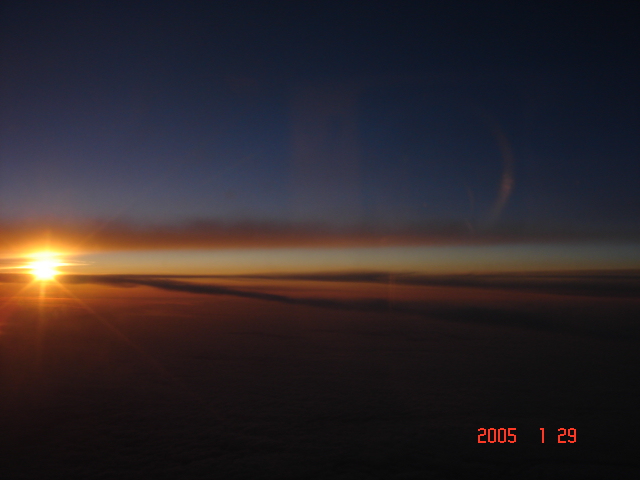 (在飞机上,从日出看到日落。。日落等待日出。。。。。。。。)