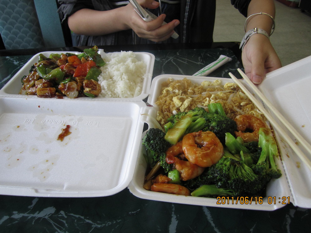 在我们TAKE PHOTOES的时候,我们遇到2个来自泰国 的男生,他们已经工作2个月了,他带我们到一家中国 餐馆,介绍给我们,哇,好久好久木有吃米饭了。我还好,适应一切事物,但是我的同伴就不行了,说胃痛。