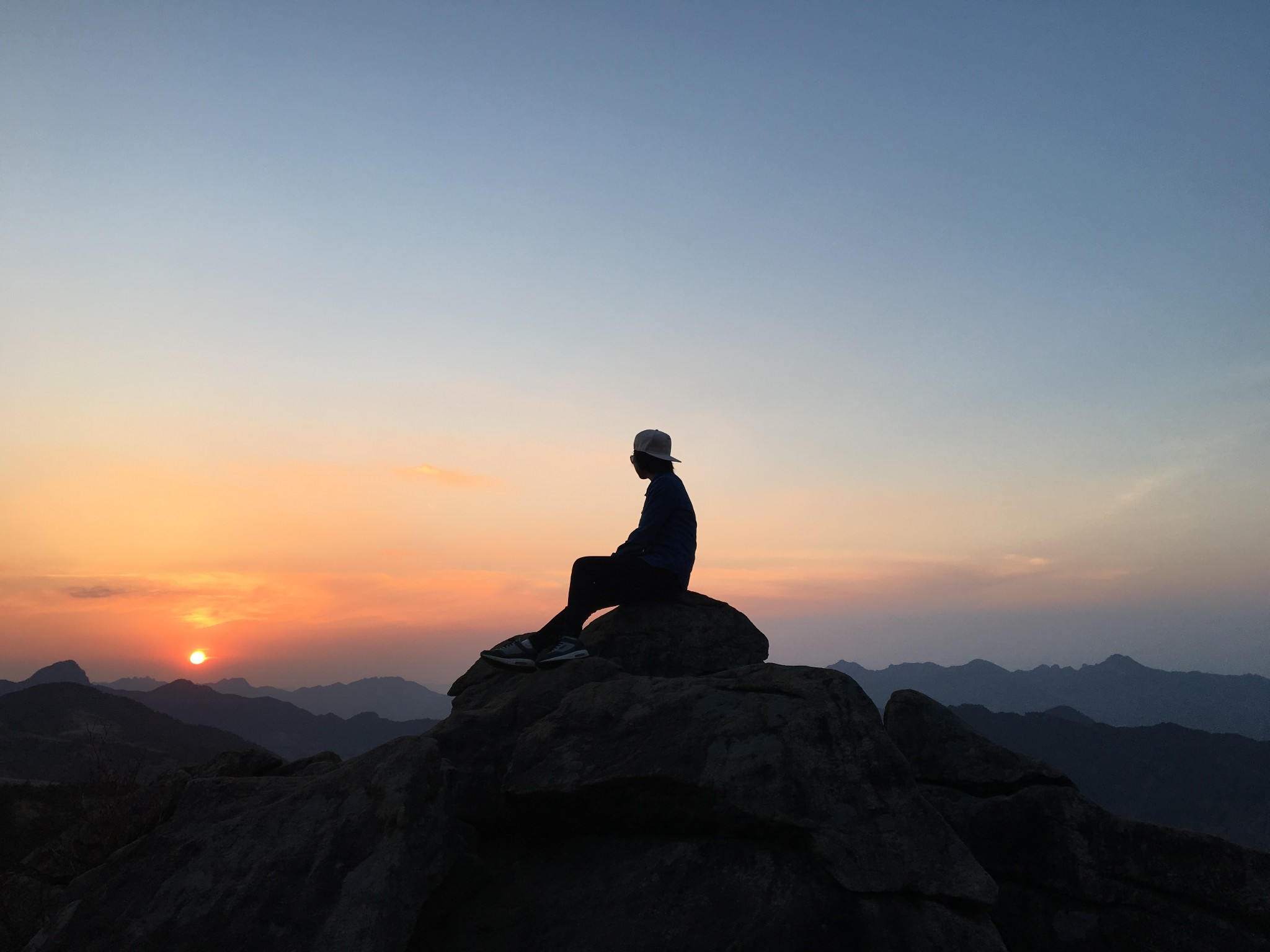 花石岗的大石头是一个绝佳的拍摄机位,刚好赶上日落时分。