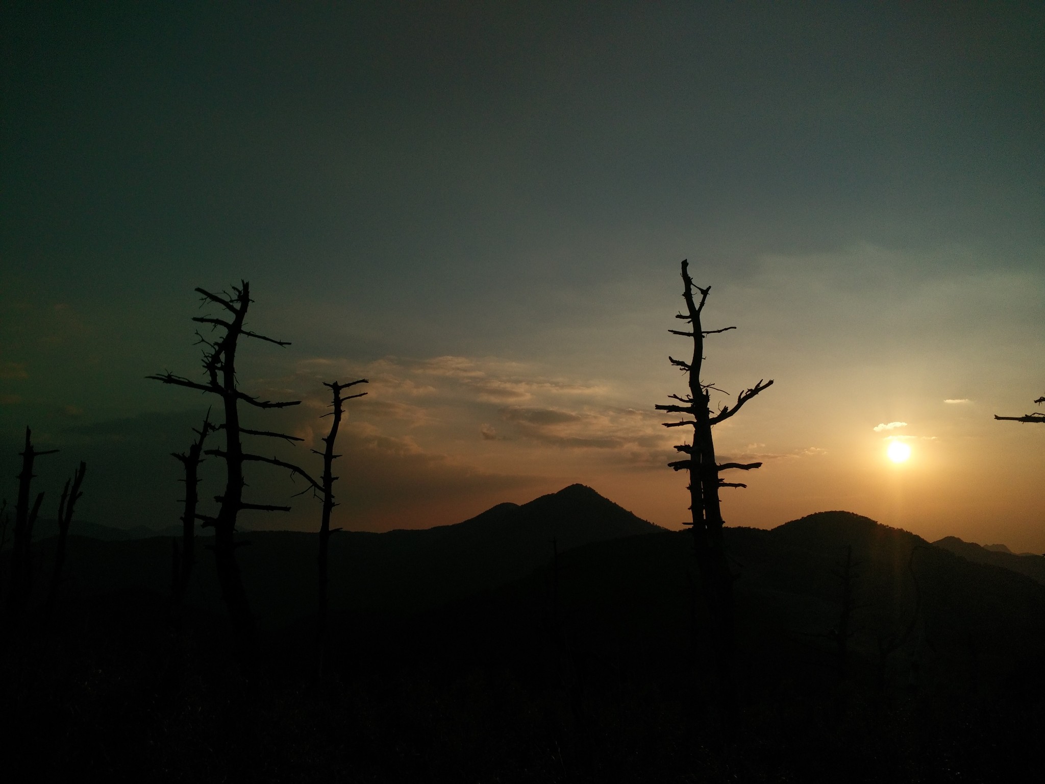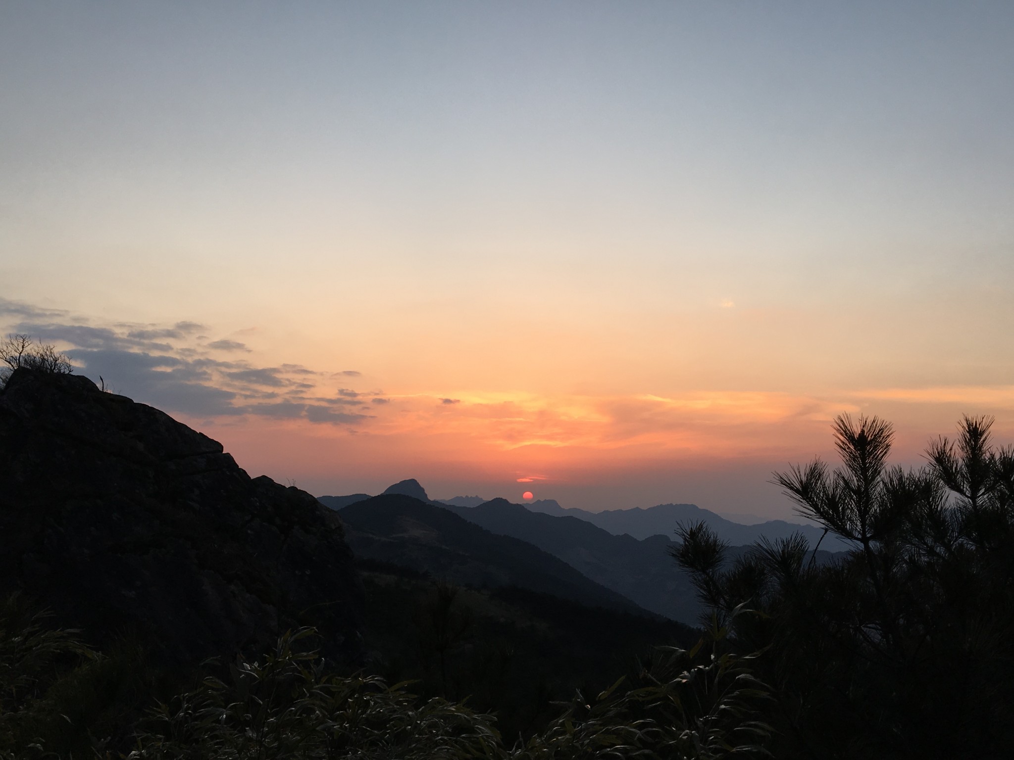 持手机电筒走了一段时间,依旧是漫长的下山路,已晚上七点半,估计也赶不到百丈岭林场露营了,于是决定在一块并不怎么平整也不宽裕的地方扎营,伴着溪水声,总不至于需要时刻警惕每一丝的风吹草动。在帐篷内吃饱喝足后,出来看星星,无奈视野被四壁的树木遮挡,回到帐内,迅速躺下,三个人都被外面的小动物们的窸窸窣窣的声音吓得不敢动弹。第二天早上,在溪水边刷牙的时候发现,暂时放在帐篷外的垃圾被小精灵们拖到河子边了。