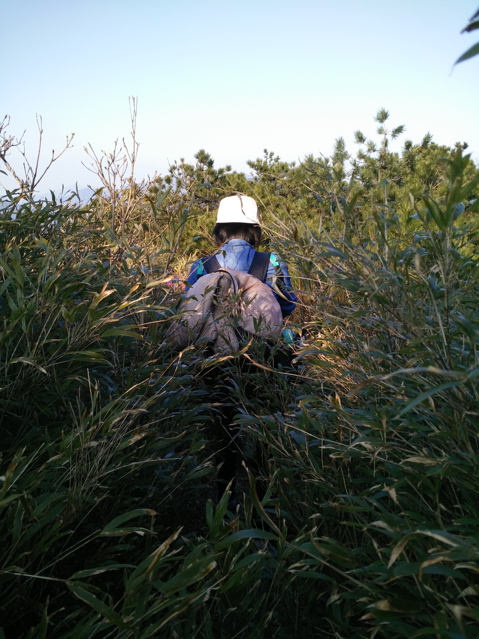 在花石岗之前,山脉起伏不大,基本上是在这样齐人高的竹丛中穿行,还较为轻松!