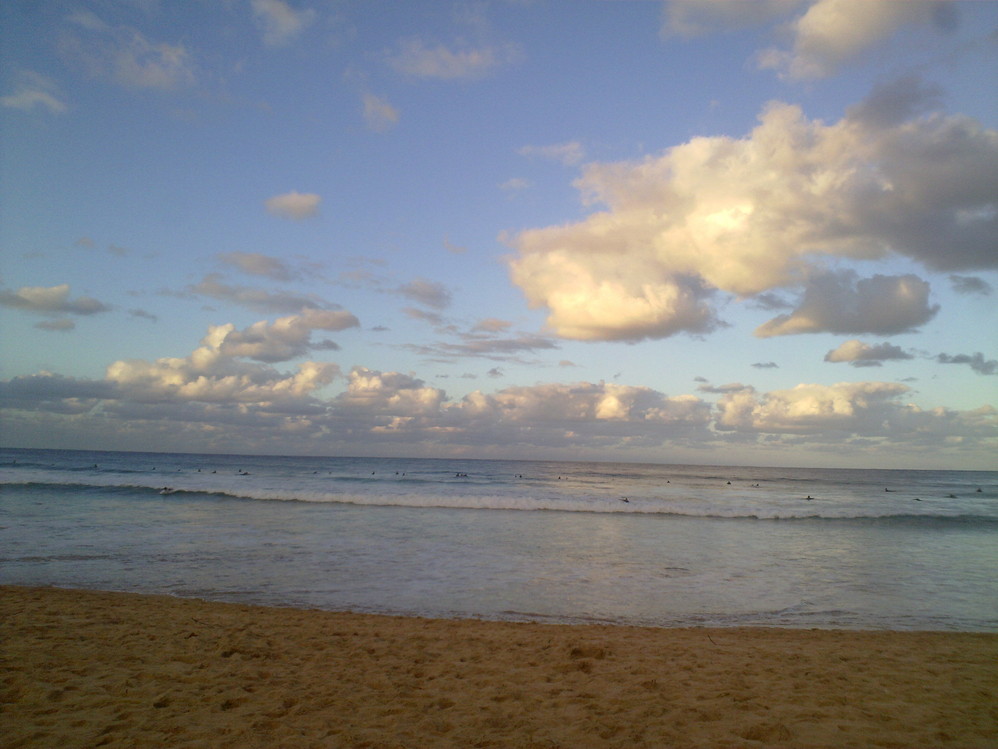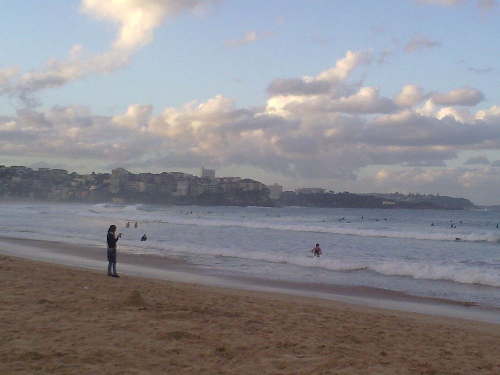 Bondi Beach那天人不算多,因为海水太凉的缘故吧,下海的没有很多。冲浪的甚是欢愉,海浪大阿~~