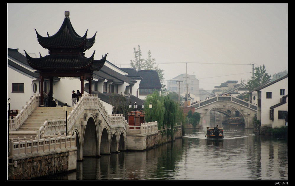 虽然祖籍在江南水乡,但对江南的记忆依然停留在父亲对祖宅后那片竹林的回忆,对宅中偶然冒出的竹笋的兴奋,对茶水泡饭就咸鱼的想念。再后来便是余秋雨《江南小镇》中埠头浣洗的女人,穿镇而过的蜿蜒河道,座座雕刻精致的石桥,淡泊而安定的生活,那是一种什么样的场景,对于久居都市的我来说是如此的向往。渴望像戴望舒的《雨巷》打着油纸伞,漫步在清凉的小巷中,看着来往如丁香的姑娘侧身而过,时间在此停止走动~~~~~~~