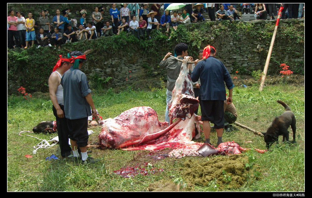 “椎牛”俗称“吃牛”,为湘西 苗族最隆重、最盛大的祭祖祀典。关于这一民族祭典