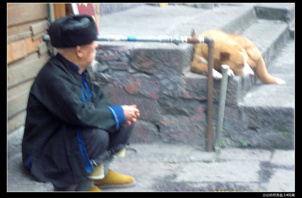 不是跟着他屁股哈! 他的烟锅柄是我见过最艺术的。
