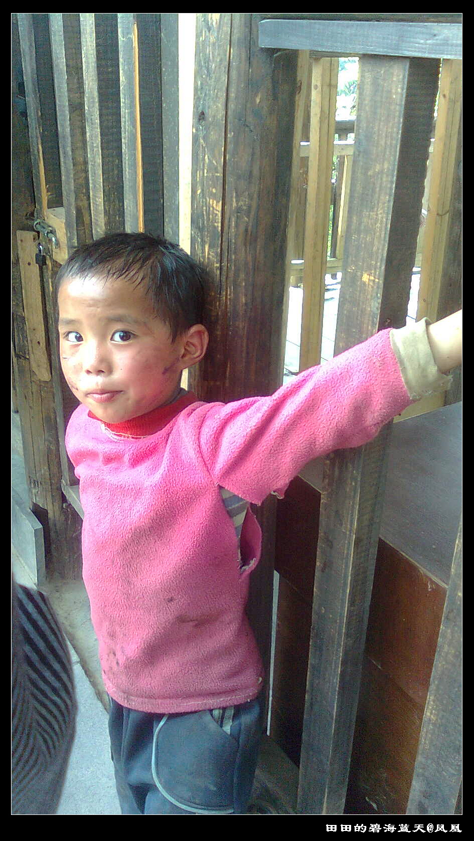等待去玩索道的同伴时,小孩非常热情的跑来说:“我会唱山歌,我会唱山歌,