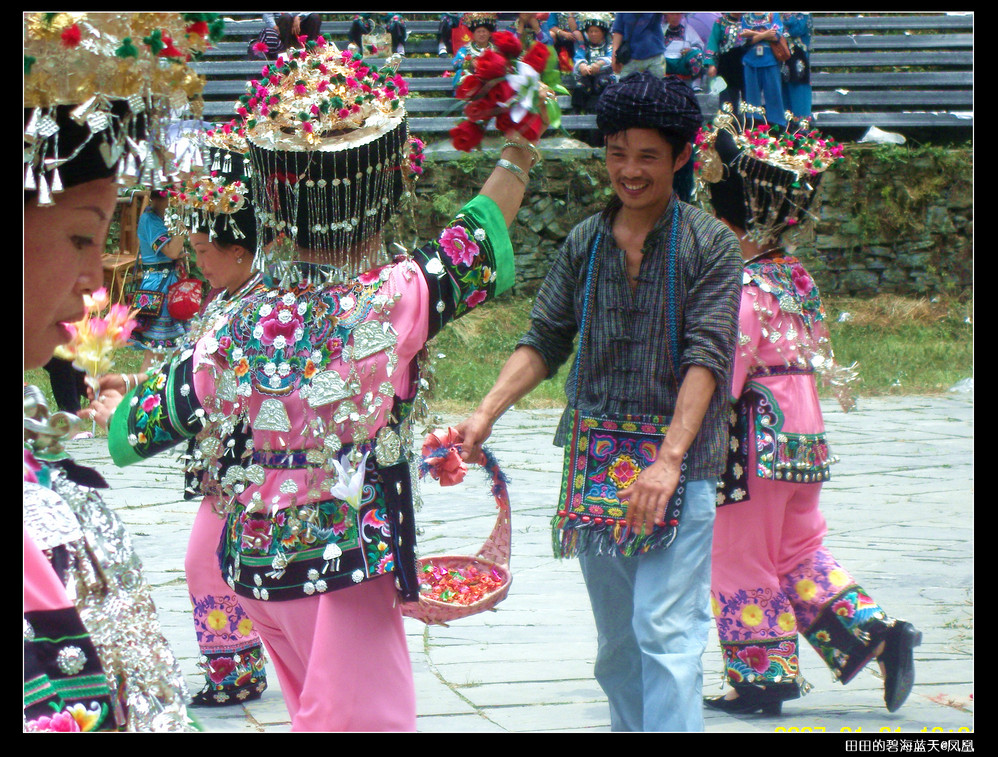非常美丽的苗族阿妹。很多人都想和她合影。