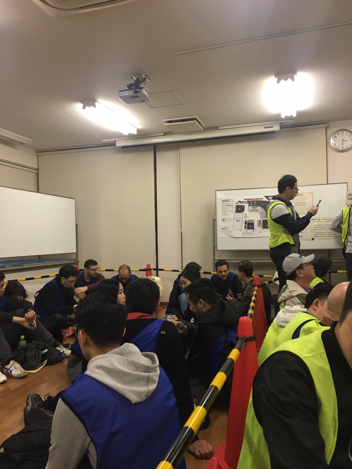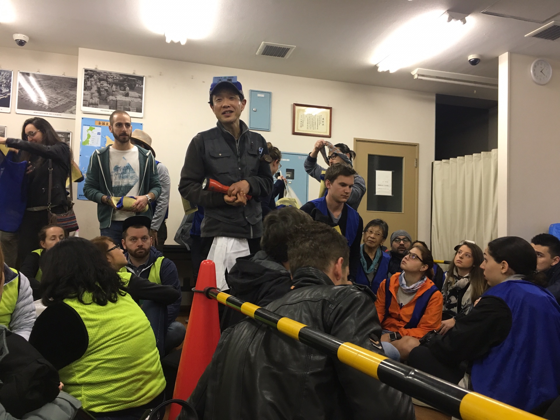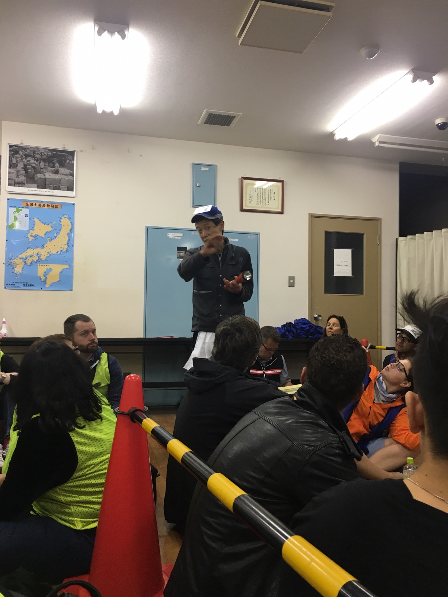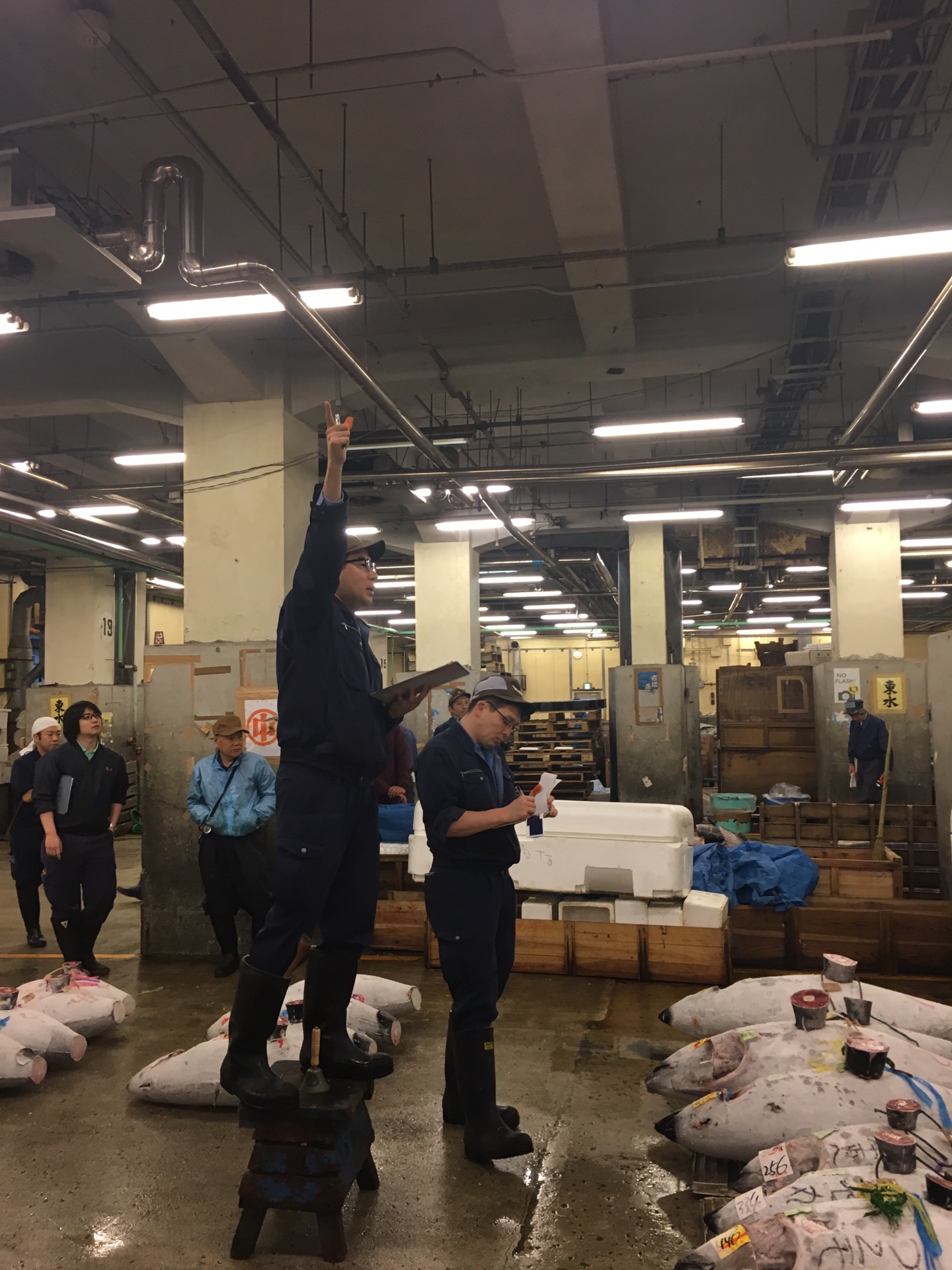 等等再等啊等,终于来了一个工作人员,用带着日语口音的英文介绍了他自己也介绍了筑地市场~他讲的形象生动,人也幽默~讲解完大家可以自由提问,他来回答~