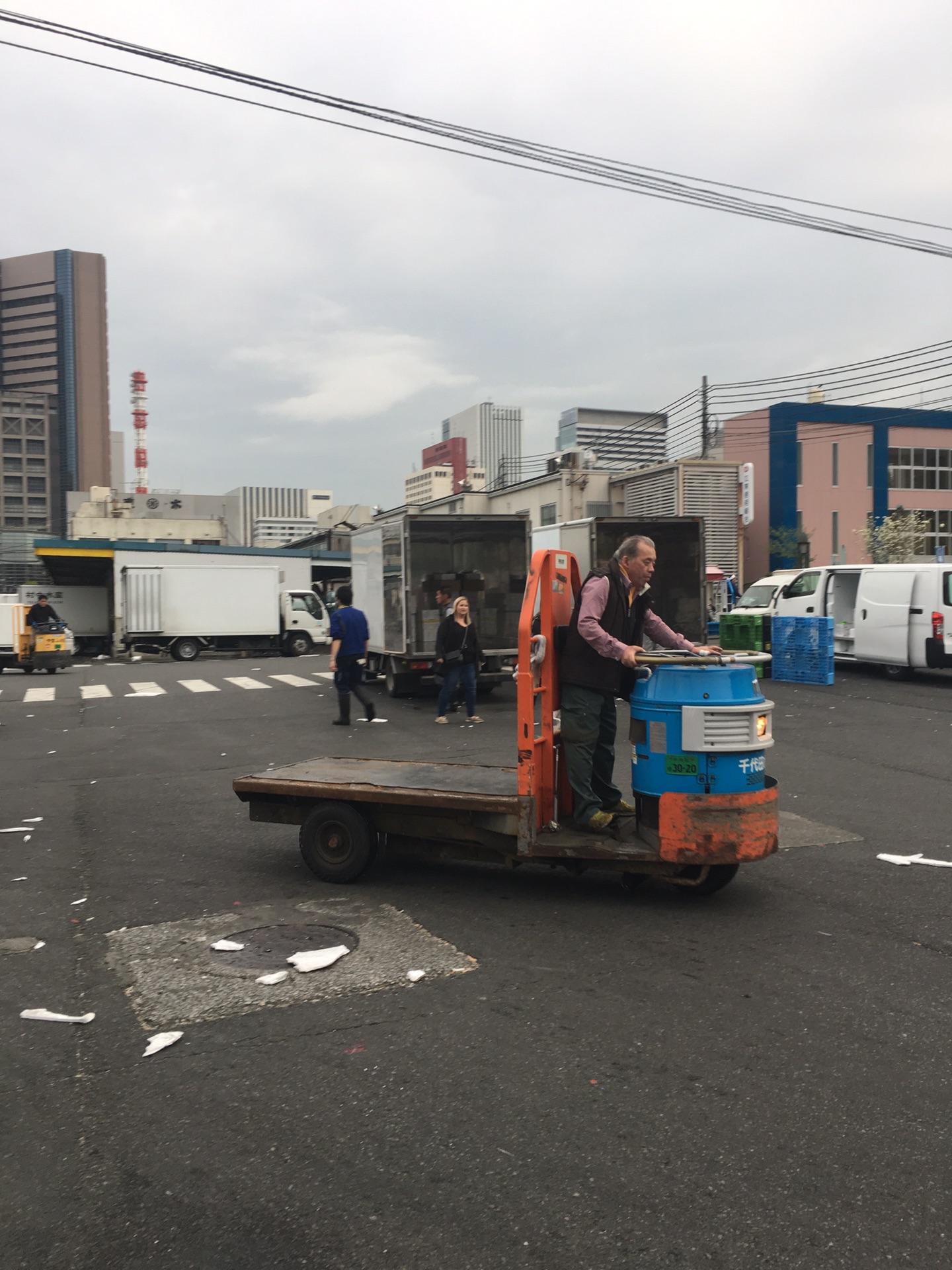 筑地市场里的小车~北京的海鲜市场里也有,只不过是坐着开的