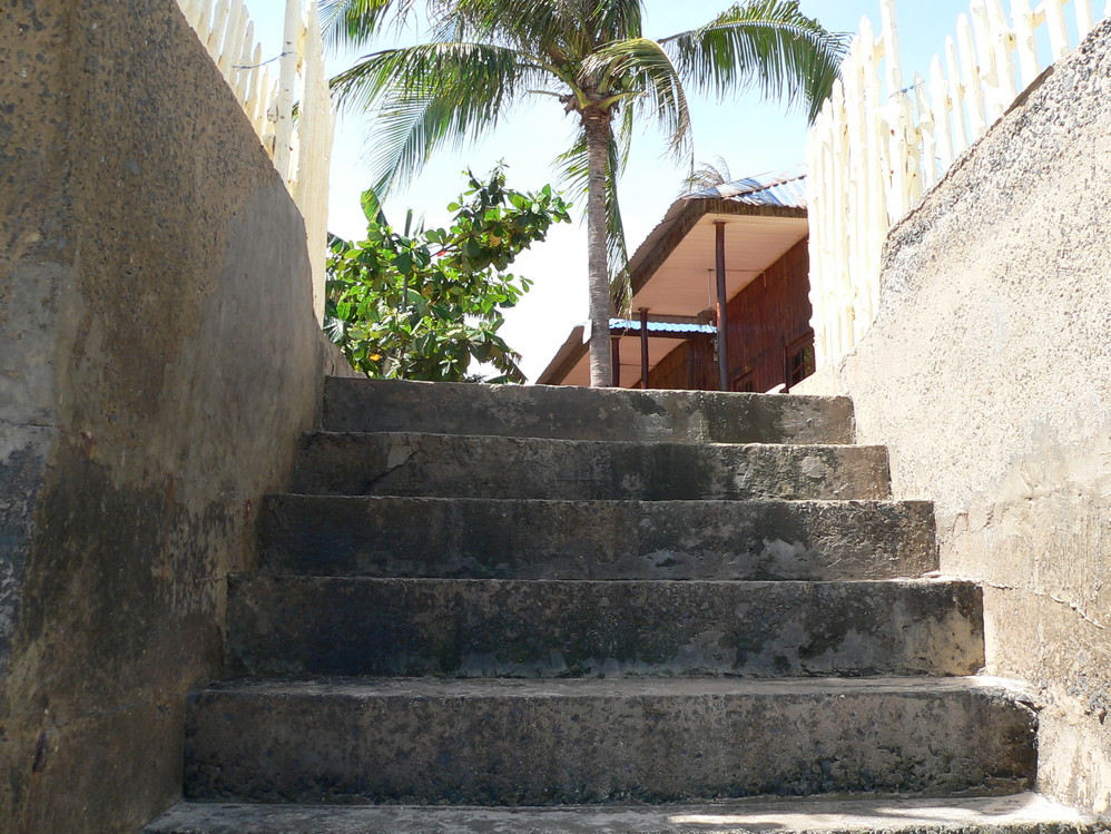 酒店后门的招牌。沿海滩一溜都是酒店,可以说是走出房门就可迈入海水中,所有酒店的后门都是24小时不设防的。