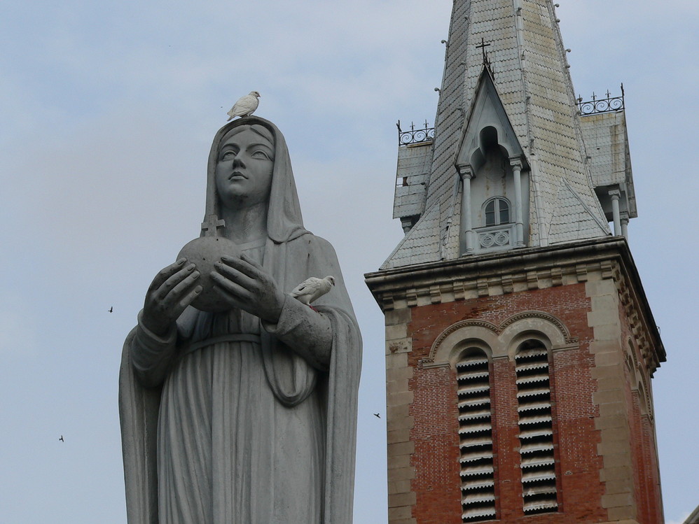 教堂前的圣母玛利亚 。两只鸽子也忒大胆了点。