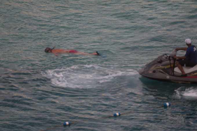 这哥们一直在浮潜,没有抬头,让岸上的游客误认为是溺水了
