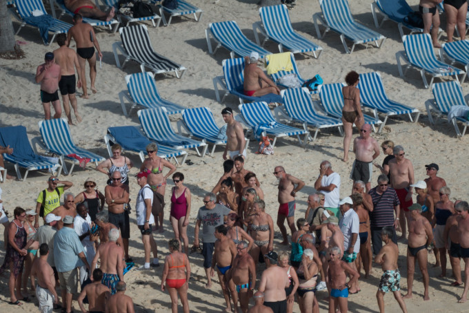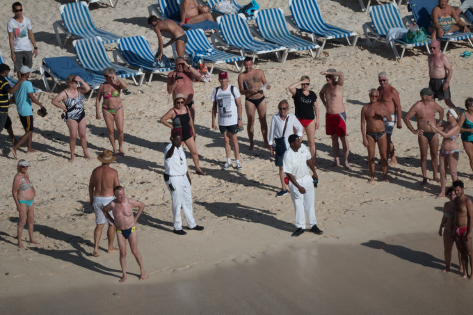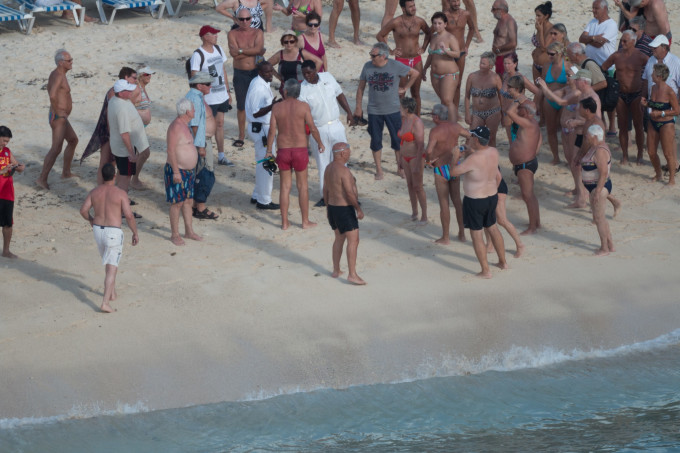 岸上游客和工作人员一直在关注他们