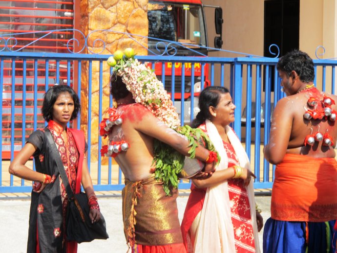 在这个岛上的第二天正好赶上印度 教的一个什么节日, 据说人被神附体后就什么都不怕,所以他们的身上都用钩子挂了铃铛。。。好恐怖啊。。。