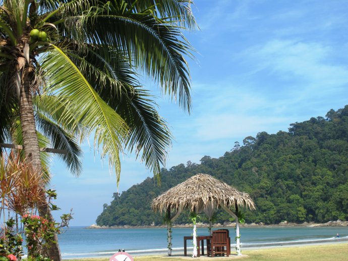 我们住的酒店是Pangkor Island Beach Resort, 是这个岛上最好的酒店,四颗星哟。这个岛还有一个附属的小岛,绿中海 (PangkorLaut)是马来西亚 半岛西海岸一个面积只有300平方公尺的私人小岛,岛上只有一个度假村,而且这个酒店就是帕瓦罗蒂曾经住过的。