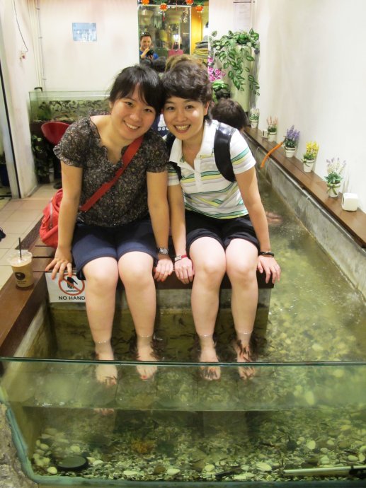 当晚按着LP上的评价去了一家叫“西湖”的餐厅,点了几样,说实话有点失望……,之后走着走着居然到Central market了,之前在地图上看觉得还挺远的,没想到走了两步就到了,和了餐厅版的Old town白咖啡,还做了fish spa,有两种一种是一扎长的黑色鱼,一种是小鱼,黑色那种实在太痒了,在我们尝试着放了一下之后还是放弃了,直接去喂那些小小鱼吧。很有意思, 非常痒痒,但是绝对是意犹未尽阿,所以之后的几天我们就商量着回头从新加坡 回来再去一趟,但是没能如愿。