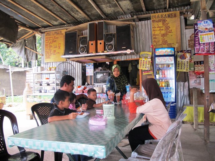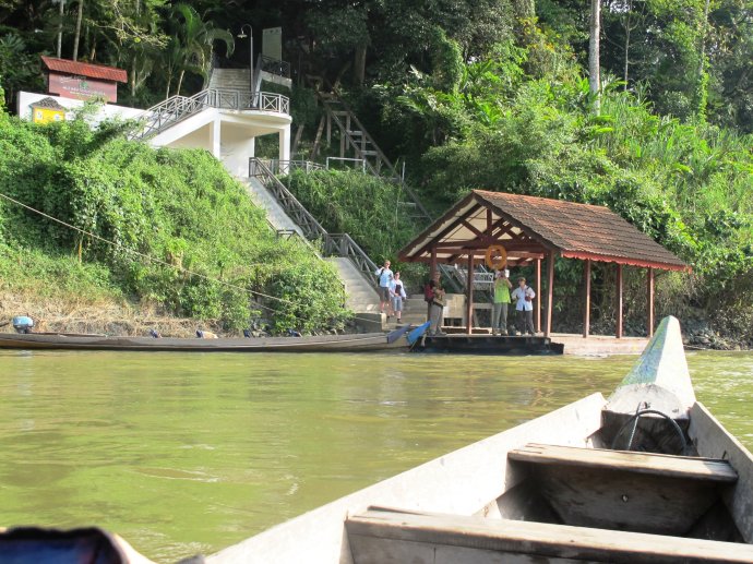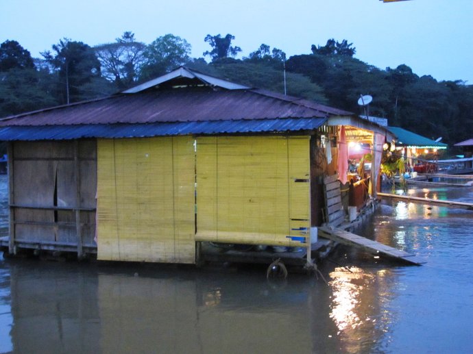 在Jerantu, 只有我们两个人的车接上了另外的5个人后向国家公园进军。在国家公园,我们就住在可爱而简陋的小木屋里,这里算不不错了。这个小镇Kuala Tahan很小,晚上也没有路灯,所以手电筒是必须的,而且一日三餐都在floating boat上。很多当地人也就是住在这种船上。