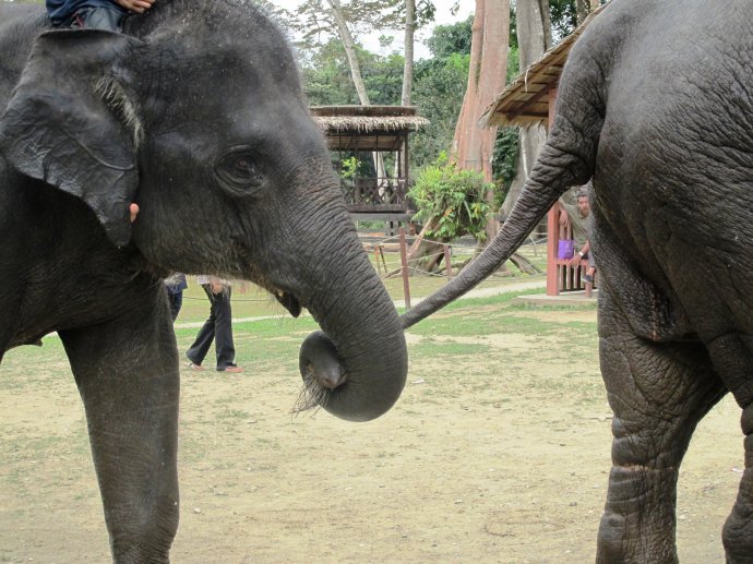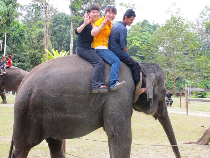 这个大象园里,有很多和大象的互动哟,有了很多我生命的中第一次,第一次大象的鼻子来我手里拿吃的,第一次骑大象,本来还有和大象一起游泳,但是最终换好泳衣的我们还是没敢下水,因为实在太脏了……哈哈