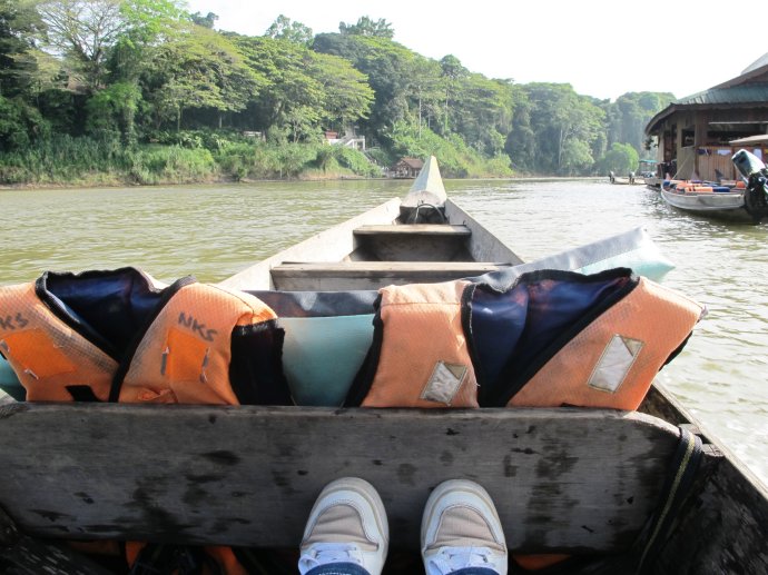 当晚,我们开始了在国家公园里的第一个activity——Night Jungle Walk。 Taman Negara National Park的border就是一条河,进入公园的标志就是过了这条河,所以每天都需要坐船。而且在这里每个相机需要买一个5块钱的license。这条河真的不得不提及,每天做着小船,真的就是那种每次看有关亚马逊雨林的纪录片里坐着快艇穿梭于树林间的那种感觉,真奇妙~