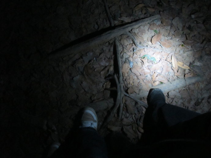 这样的热带国家公园,没有人工的台阶,只有被踩出来的小路,上面布满了树根和落叶,深夜走在寂静的公园里,只能听到我们脚步踩在上面的刷刷声。