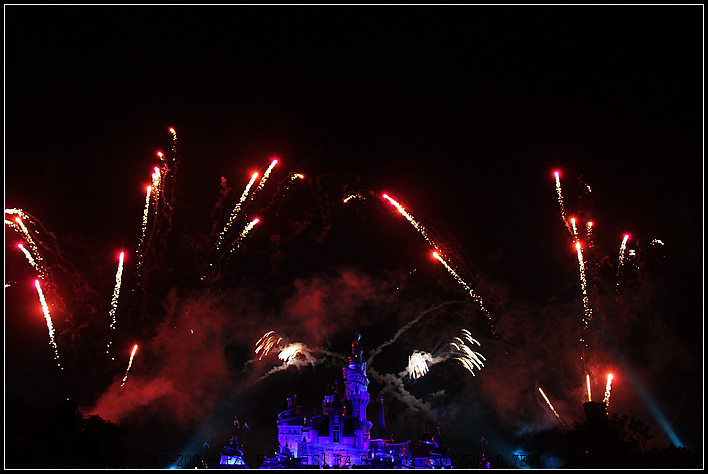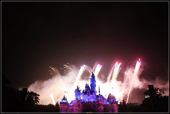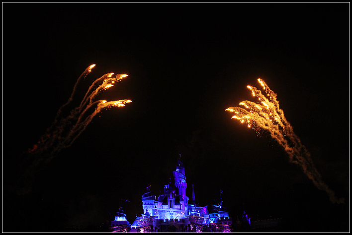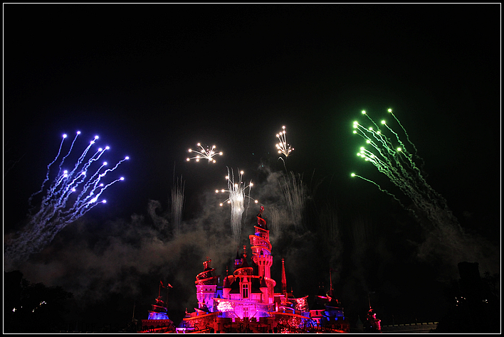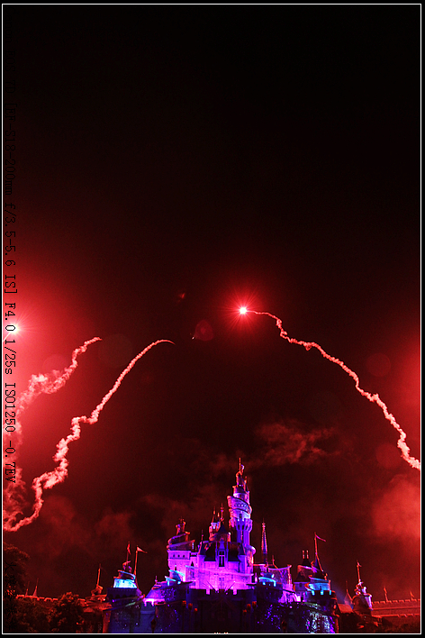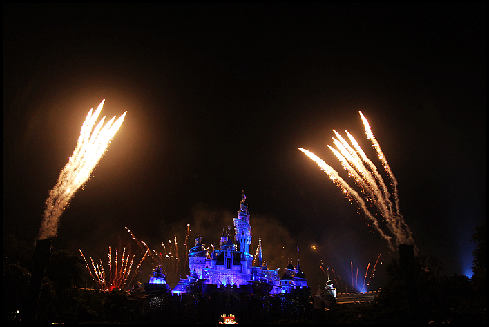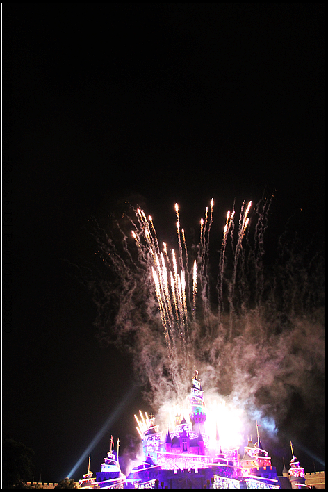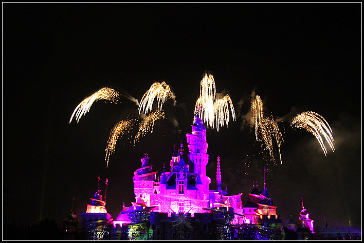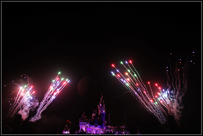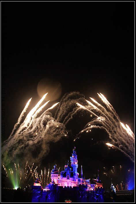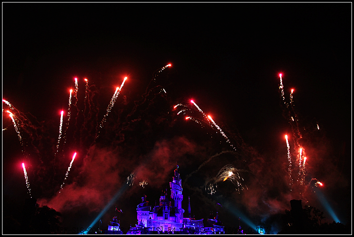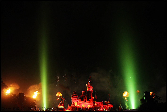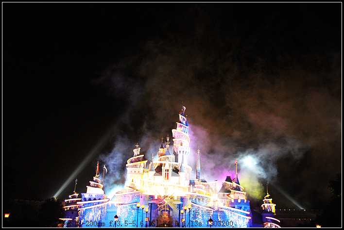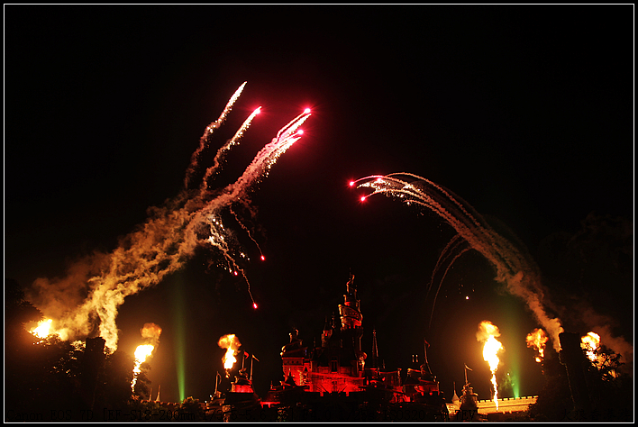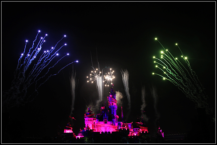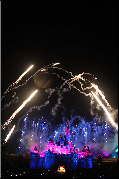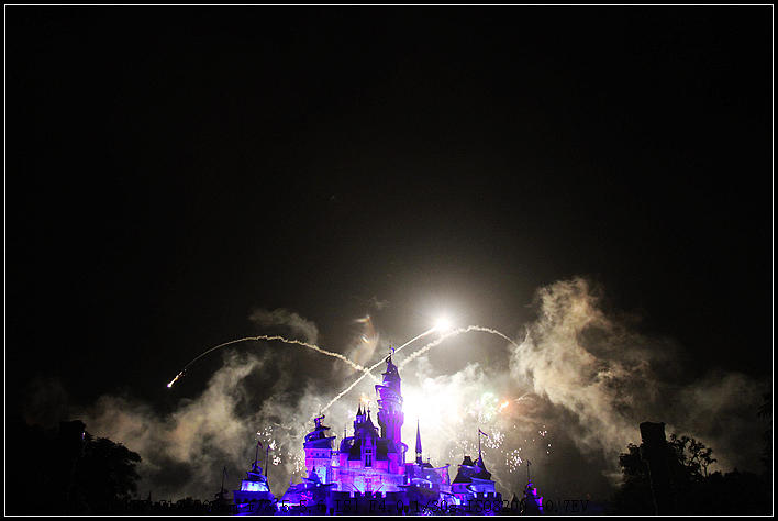 城堡入口正好直对着旋转木马。。演出开始时,木马也停止转动了。。
