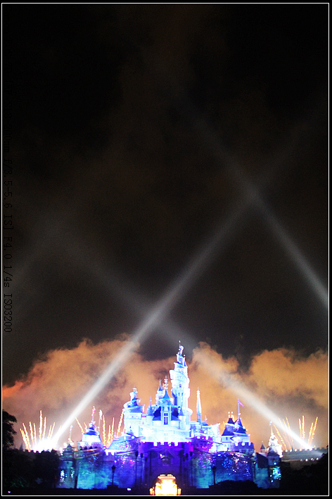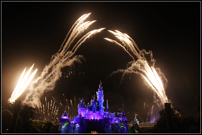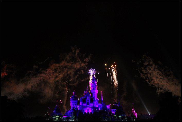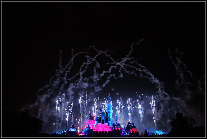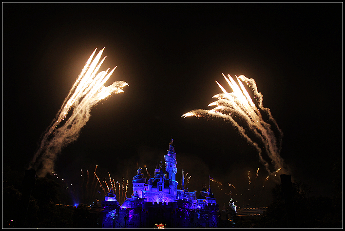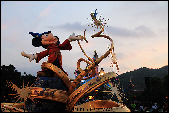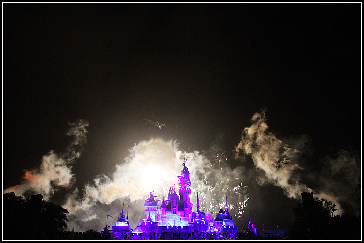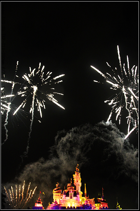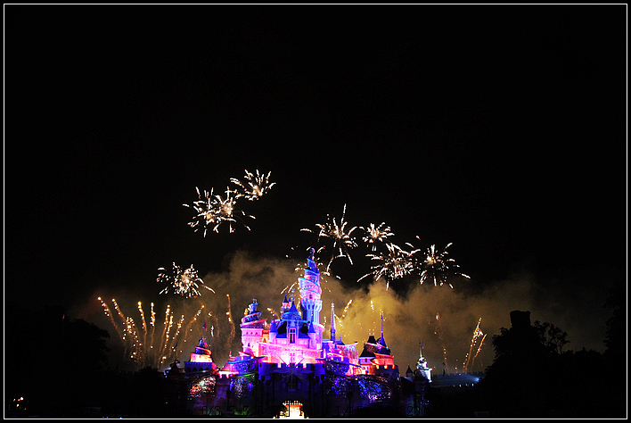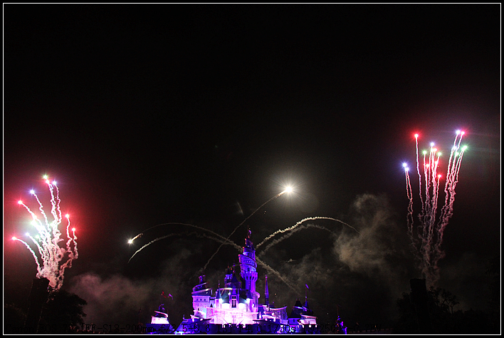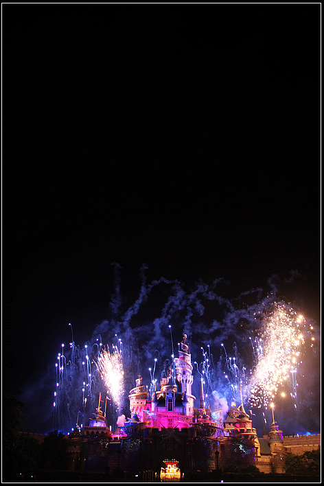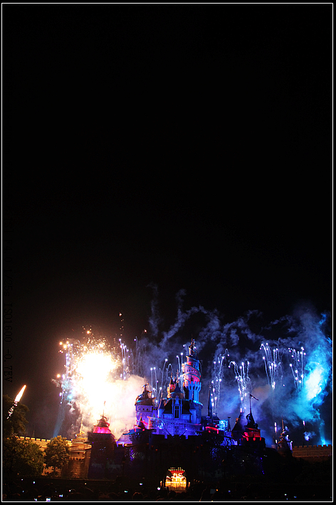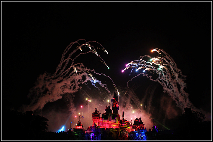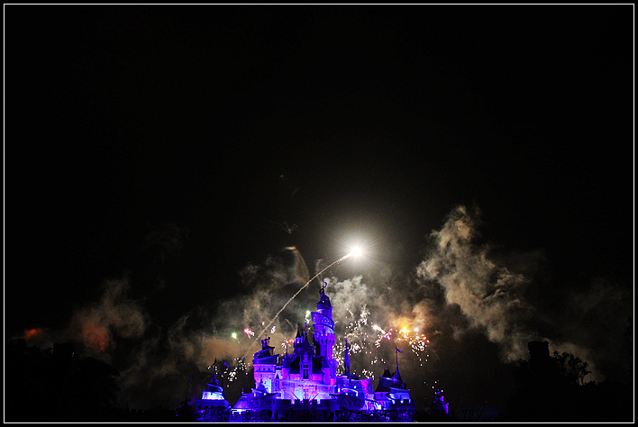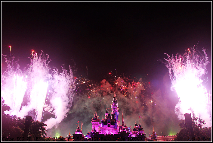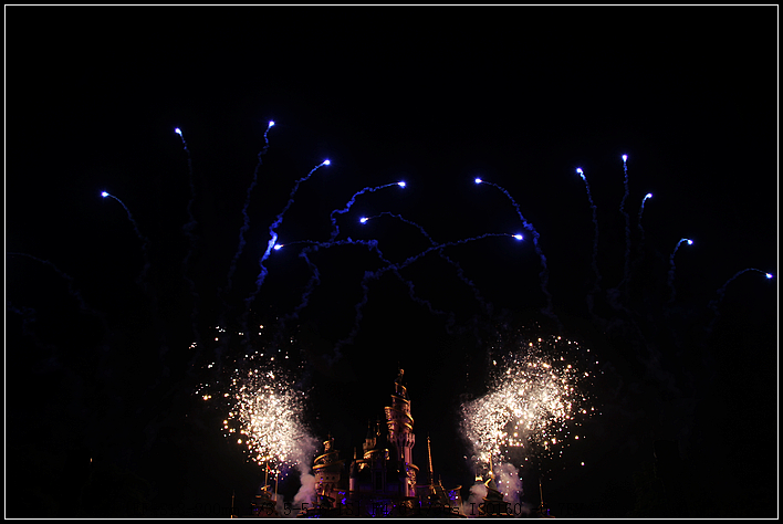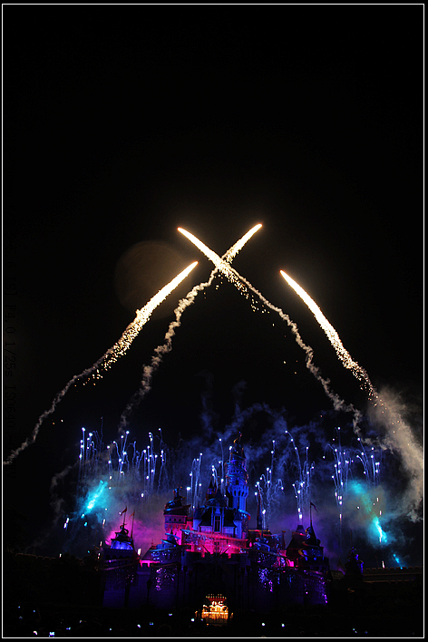 城堡入口正好直对着旋转木马。。演出开始时,木马也停止转动了。。