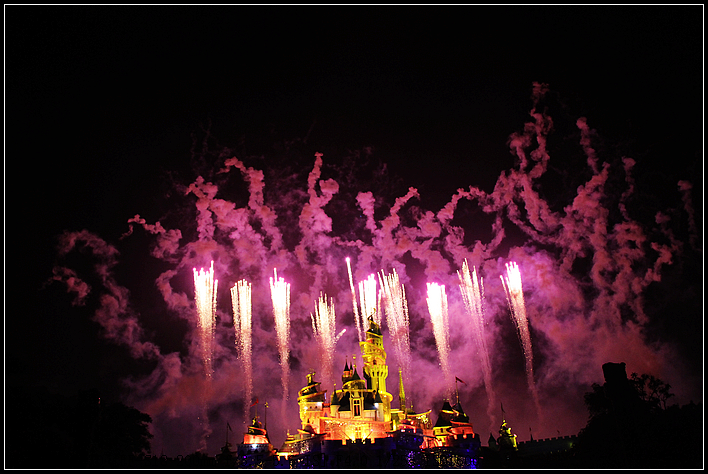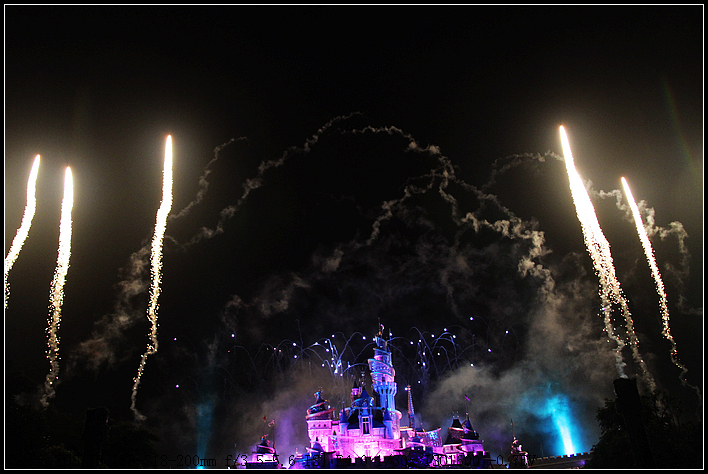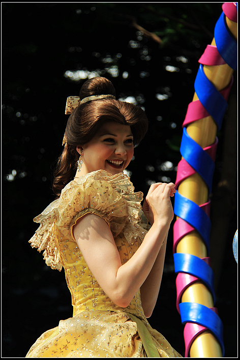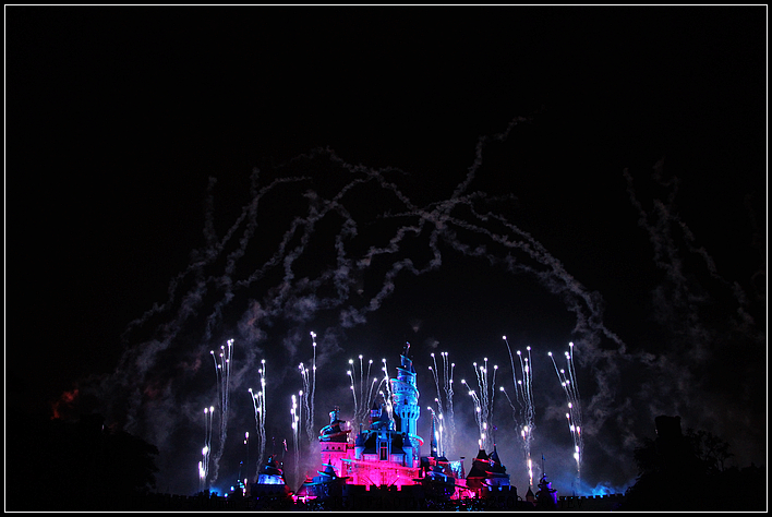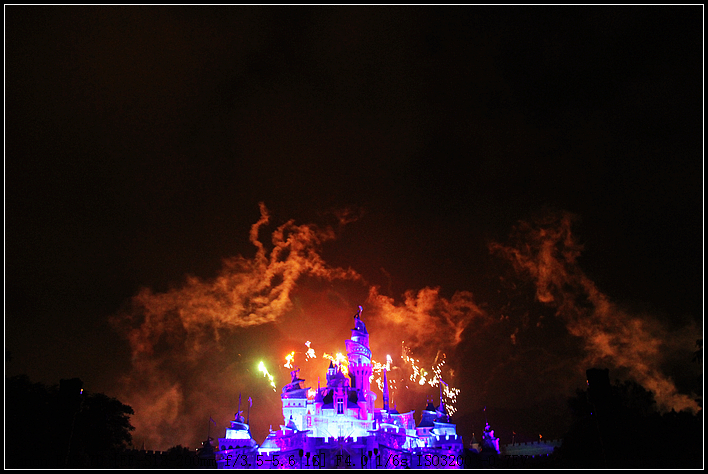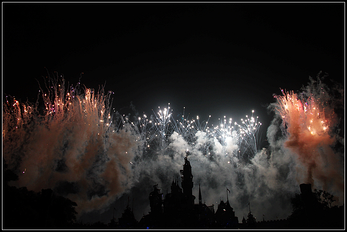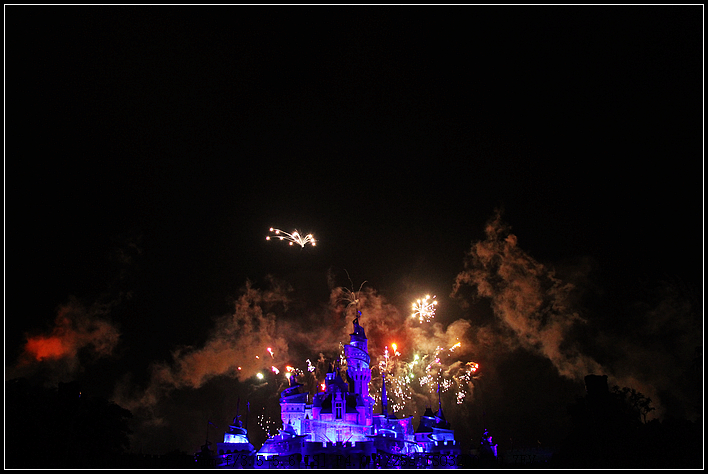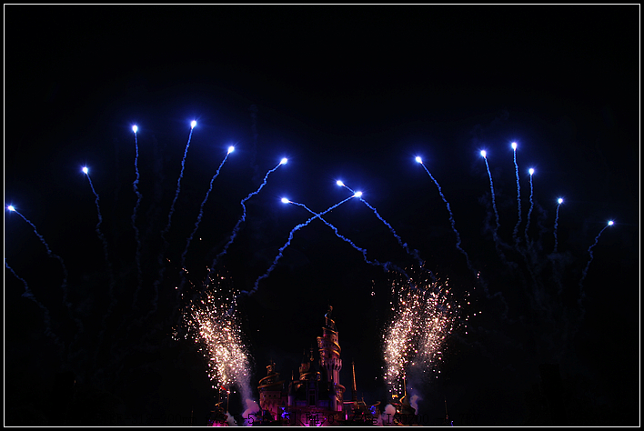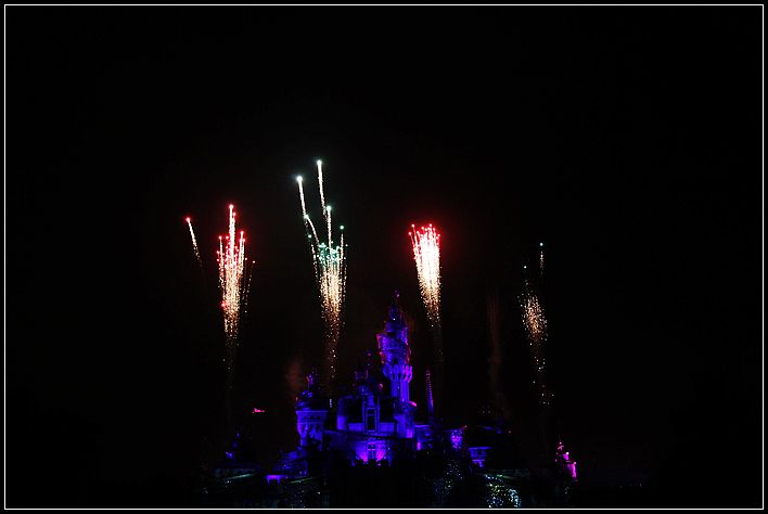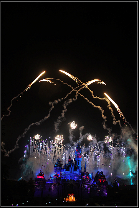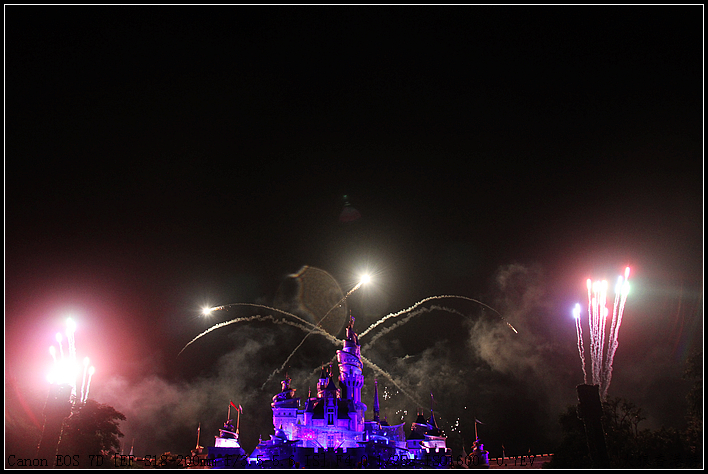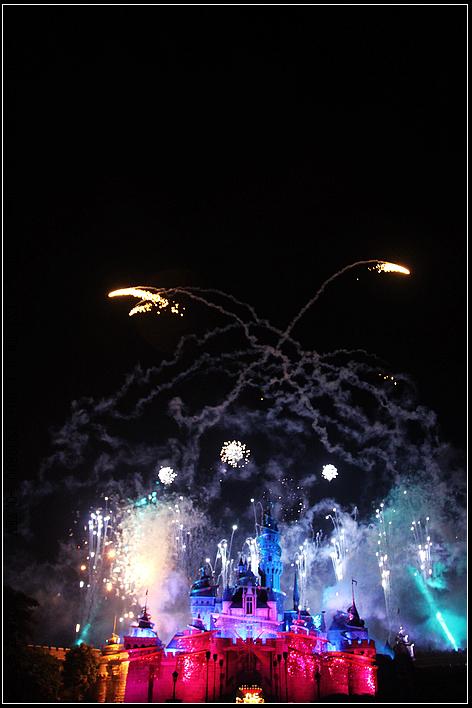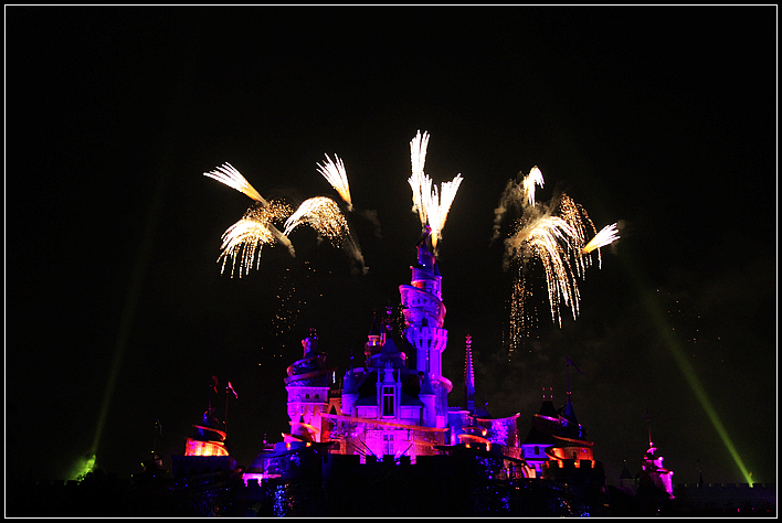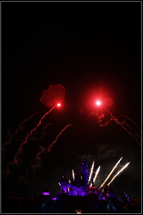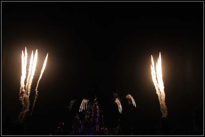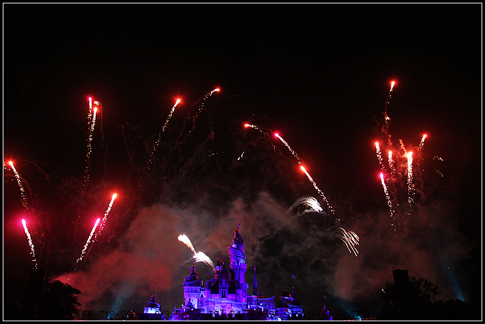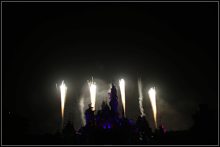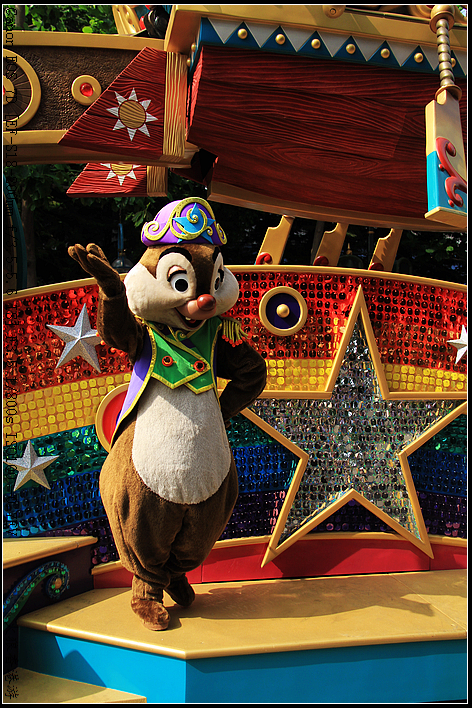 城堡入口正好直对着旋转木马。。演出开始时,木马也停止转动了。。
