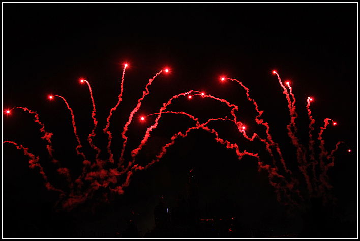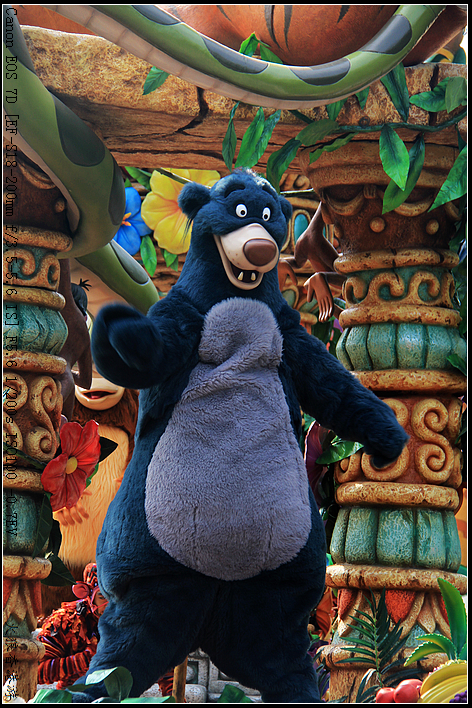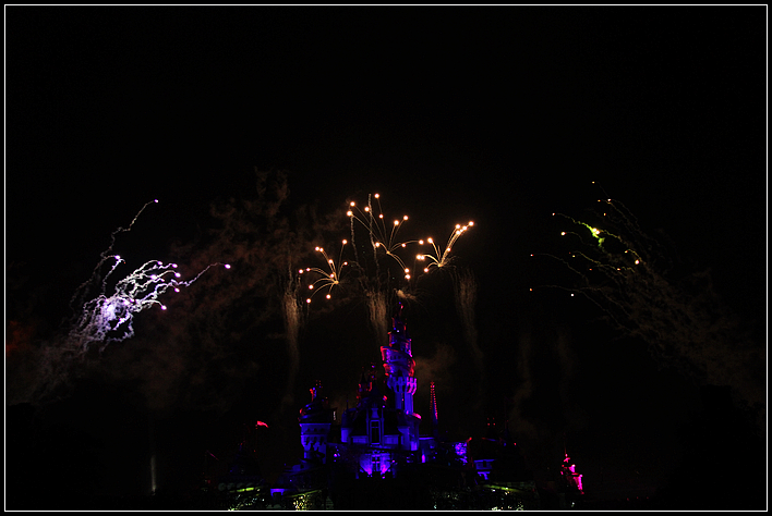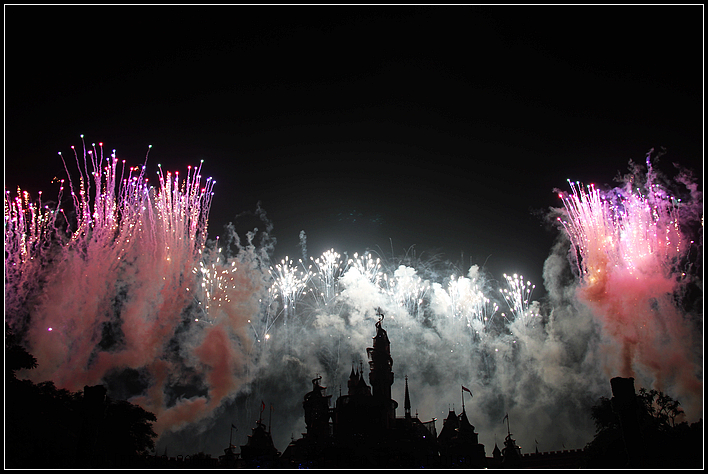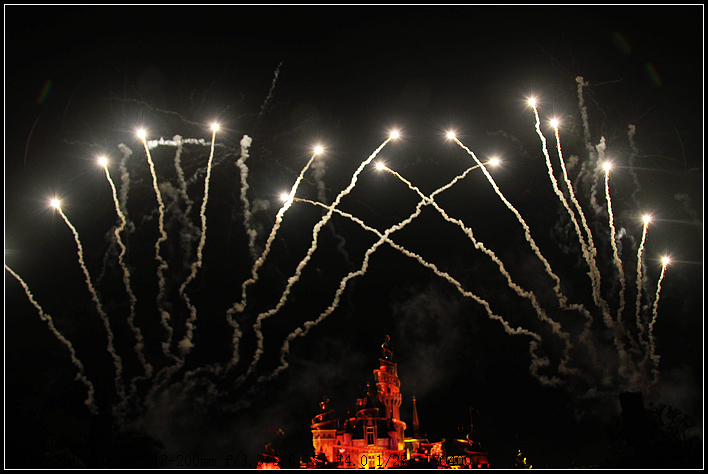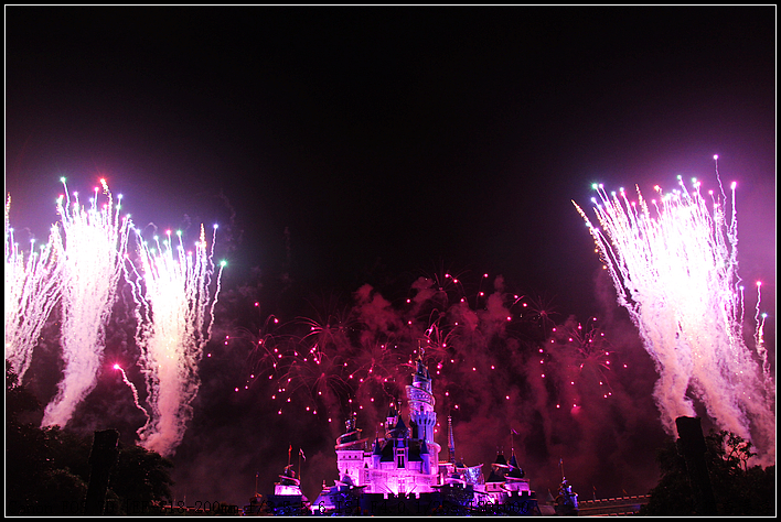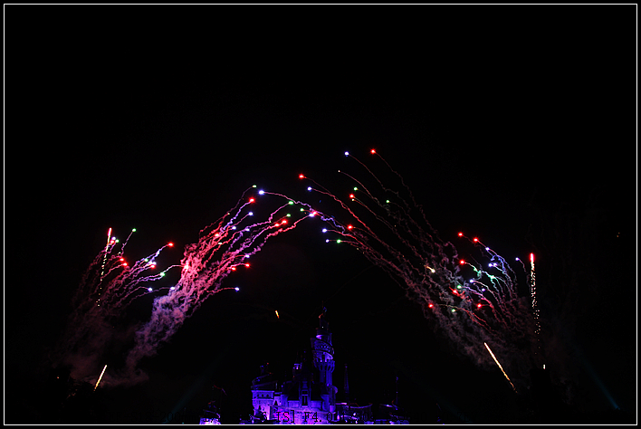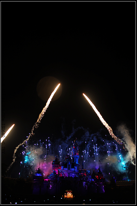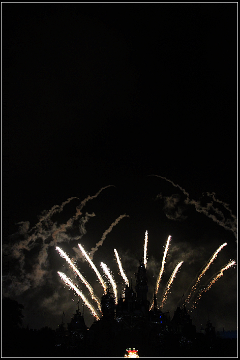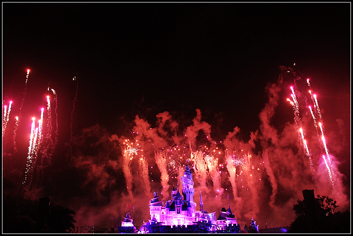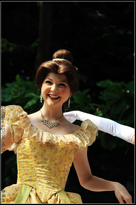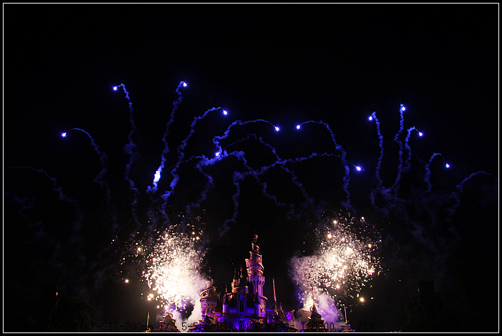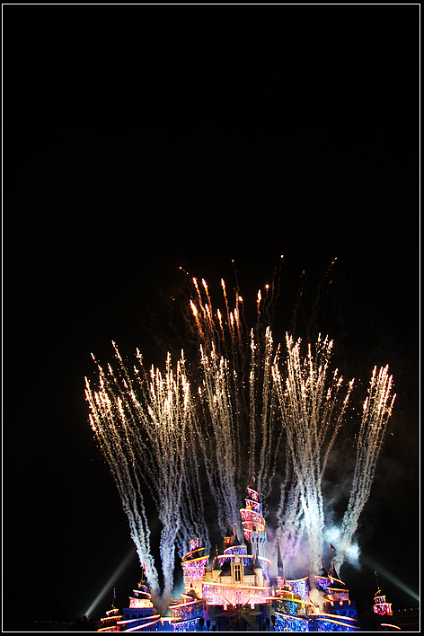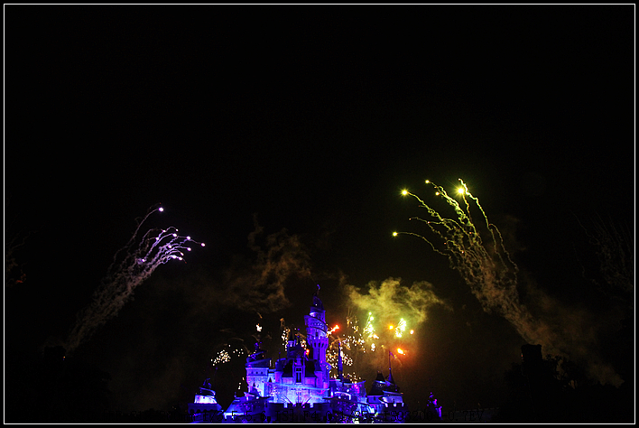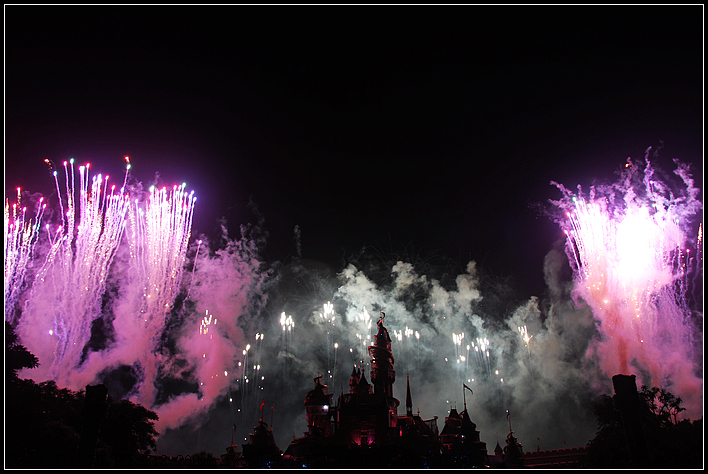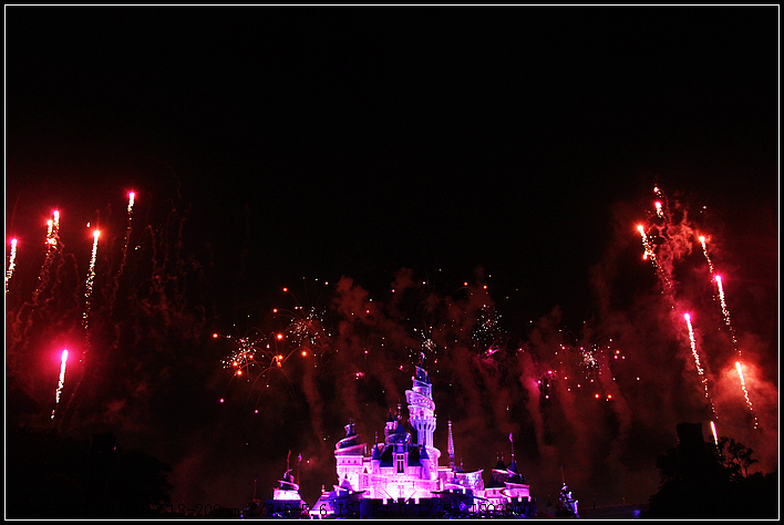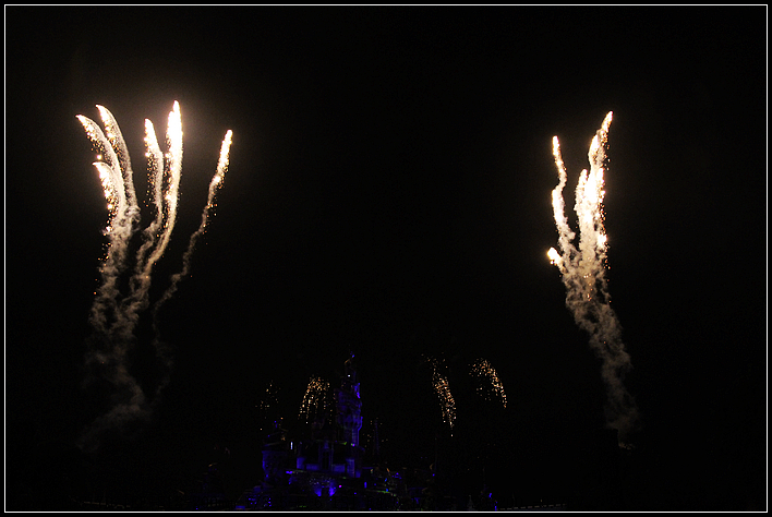 城堡入口正好直对着旋转木马。。演出开始时,木马也停止转动了。。